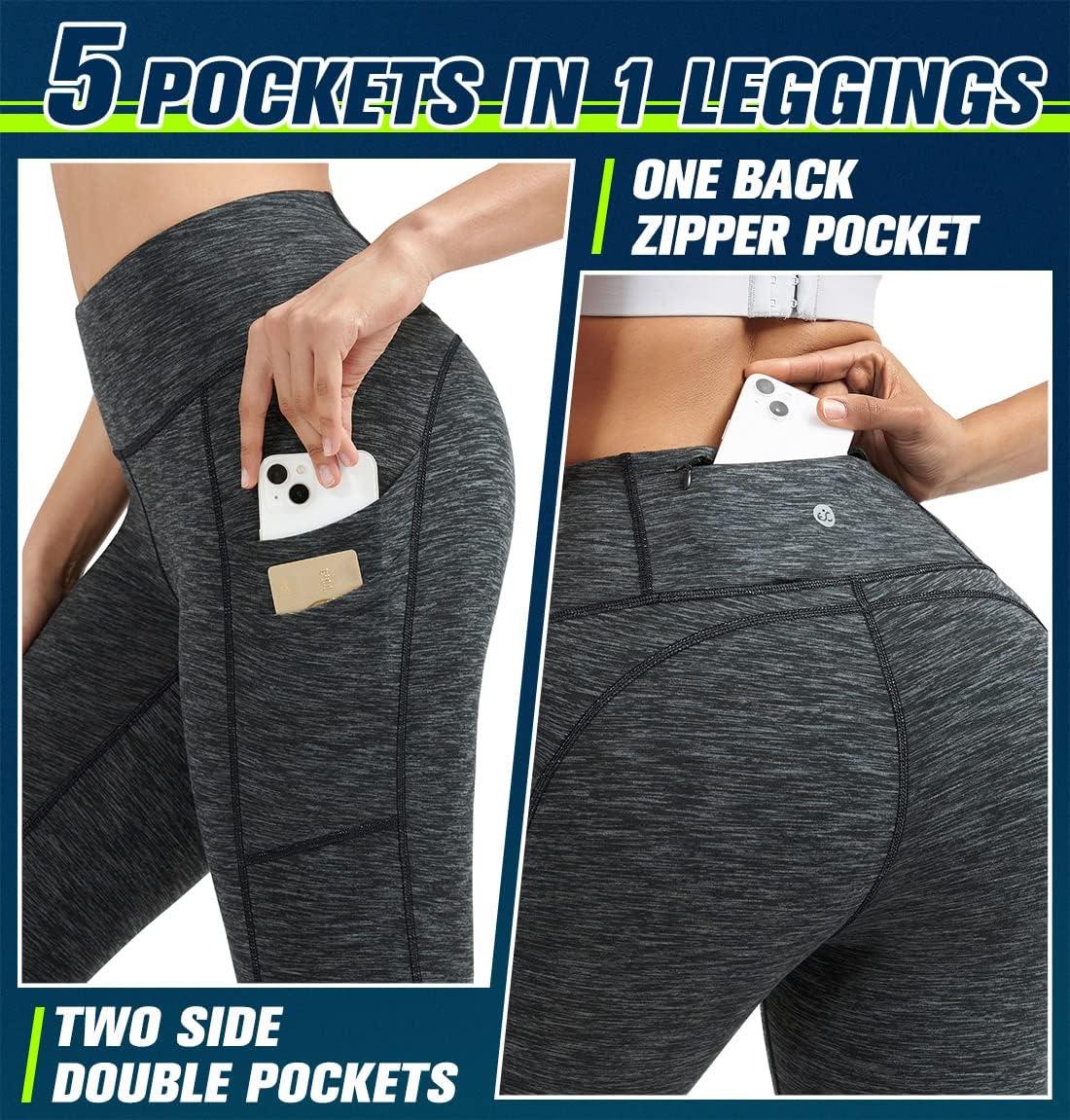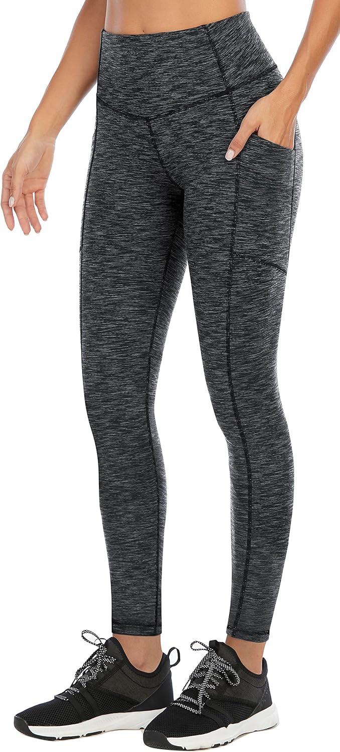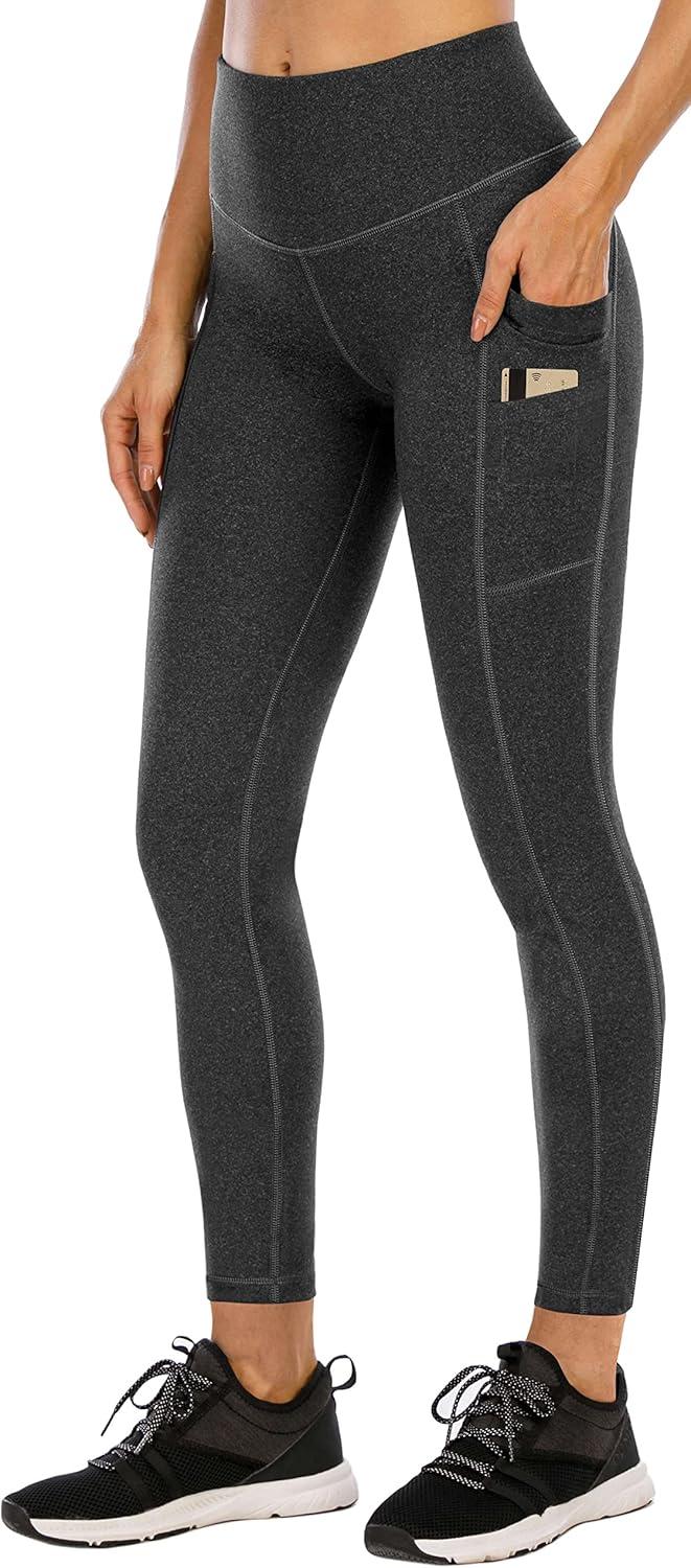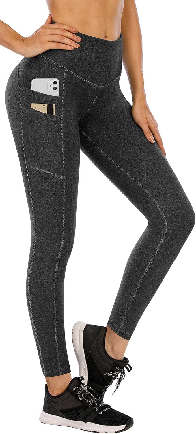Ewedoos Leggings with 5 Pockets for Women Yoga Pants 25″/ 27″ Workout Leggings for Women Tummy Control Running(Charcoal)
