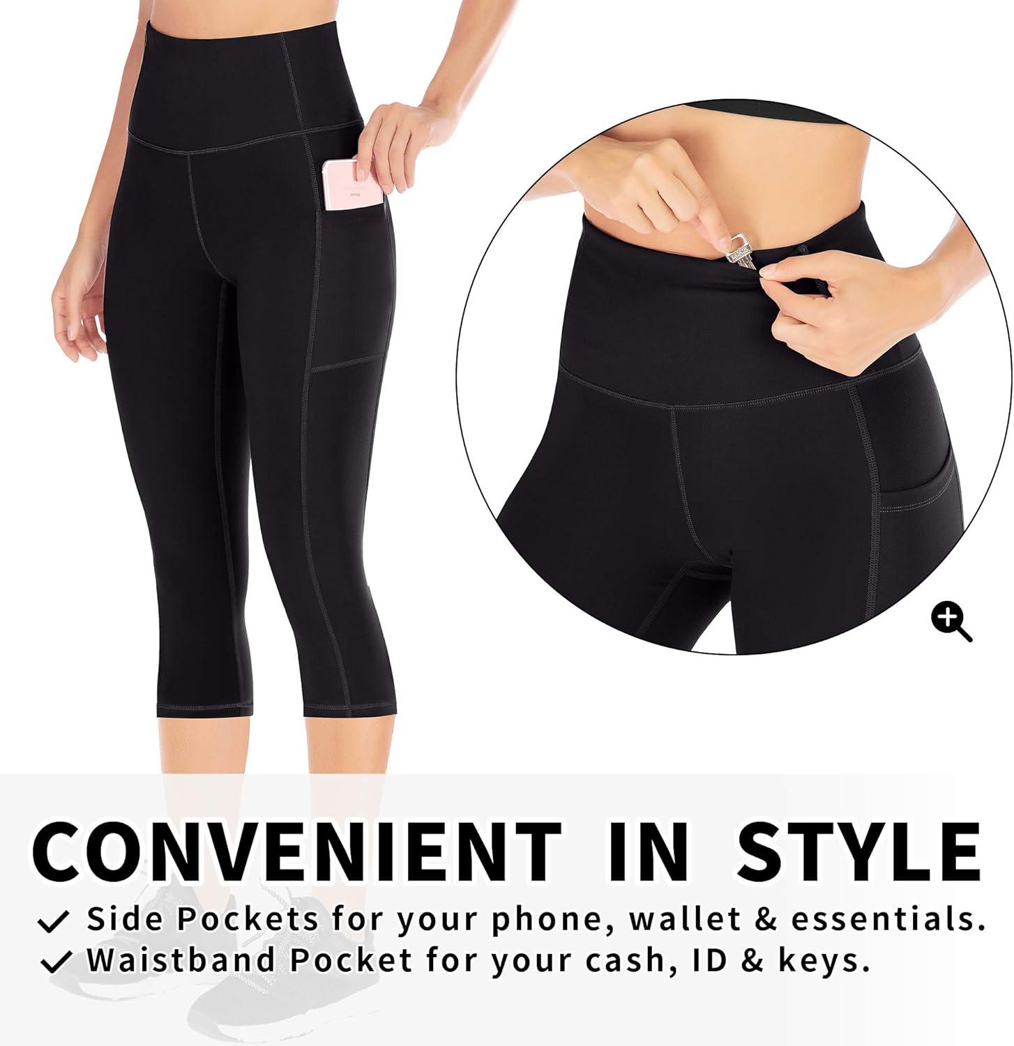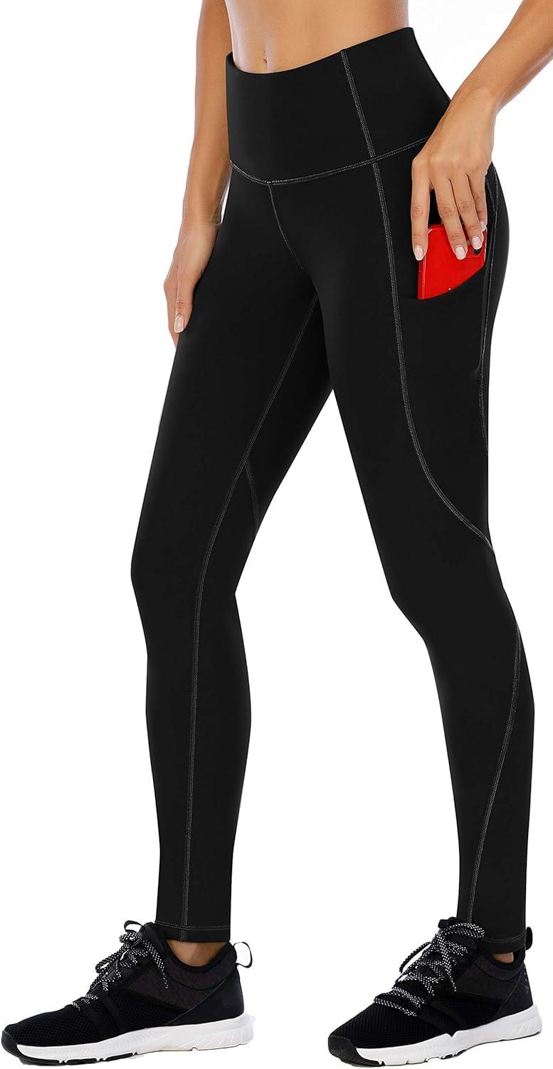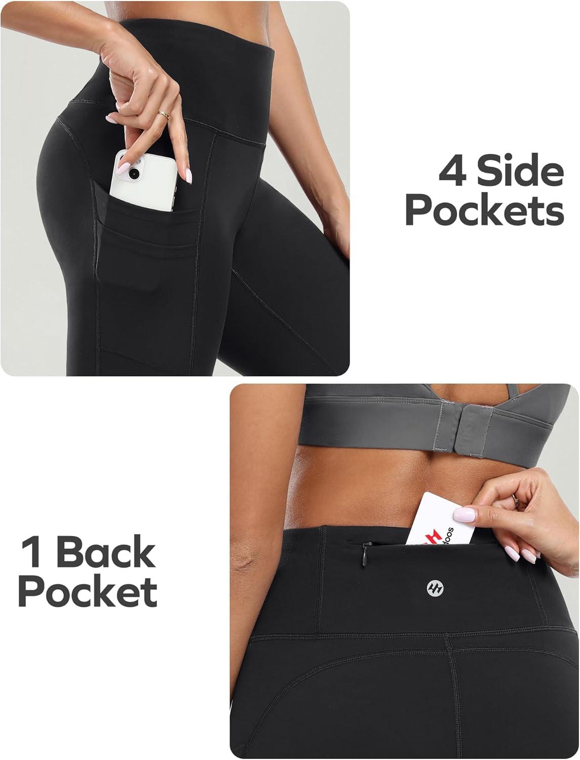 Ewedoos Leggings with 5 Pockets for Women Yoga Pants 25″/ 27″ Workout Leggings for Women Tummy Control Running(Black)