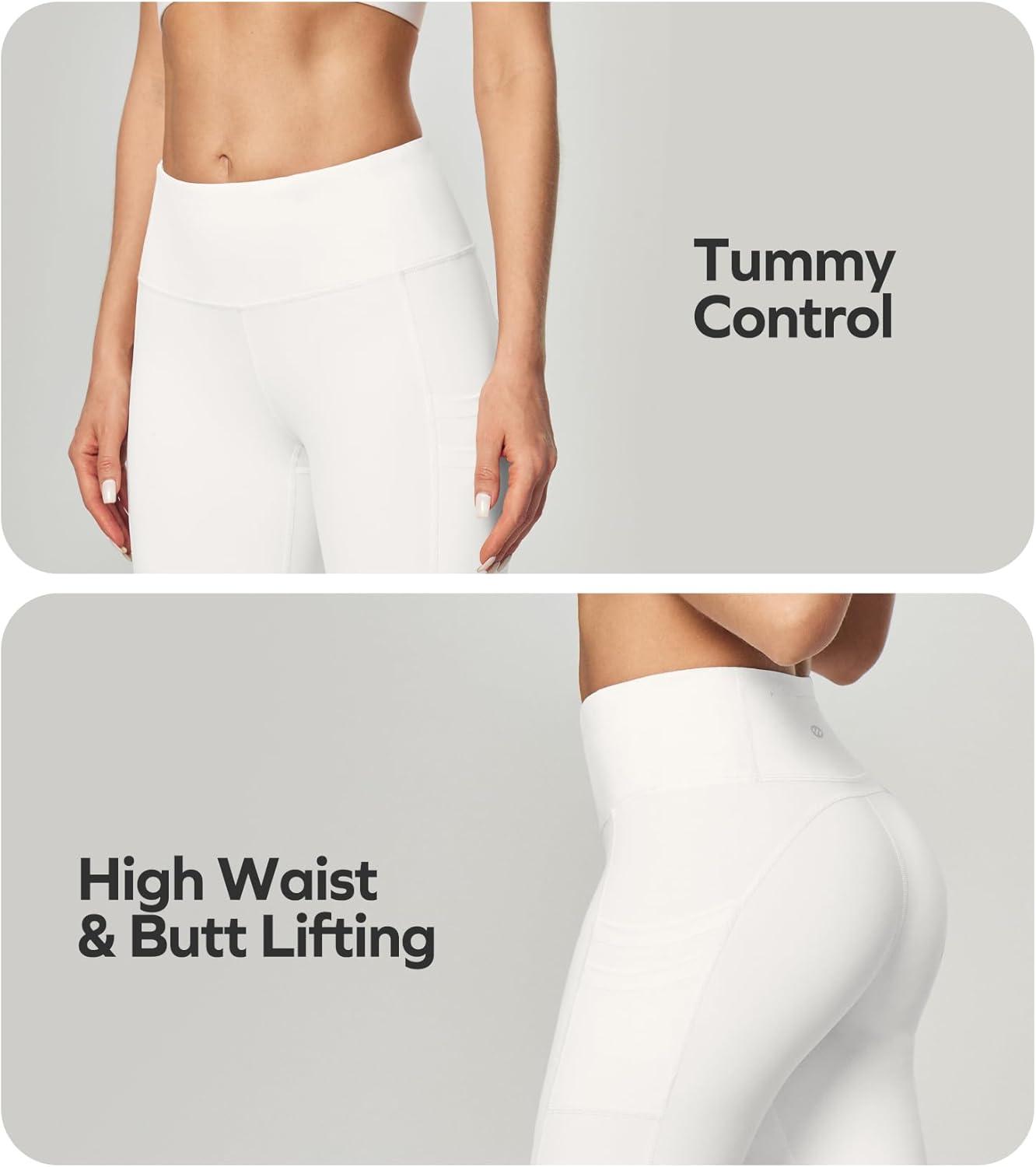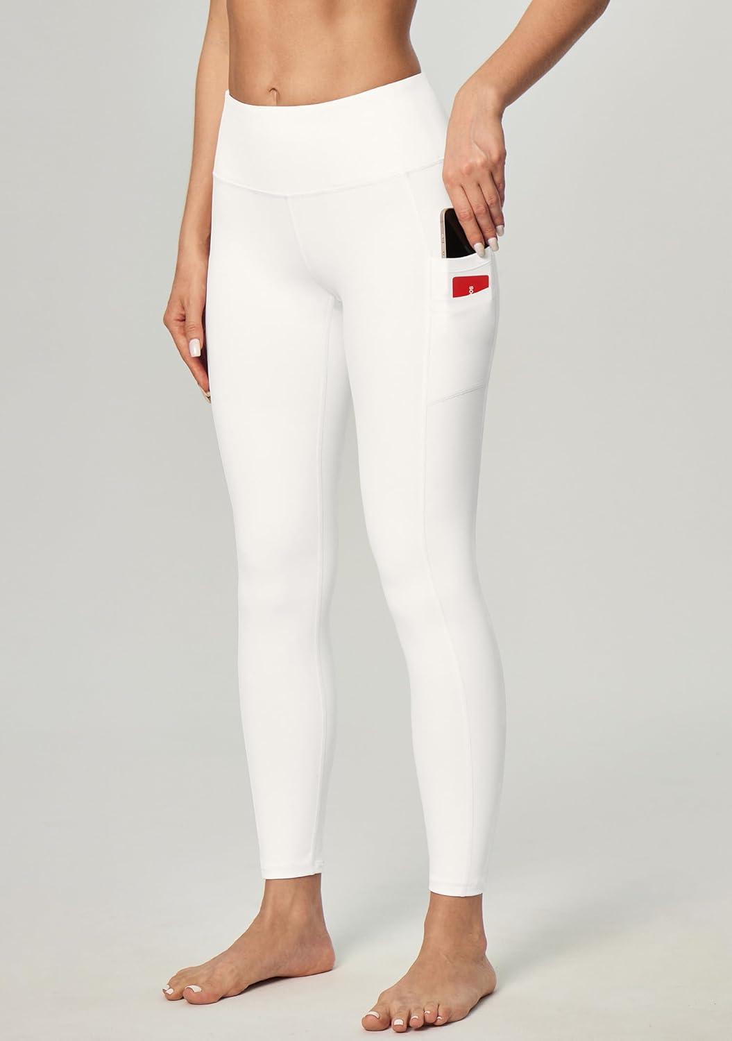 Ewedoos Leggings with 5 Pockets for Women Yoga Pants 25″/ 27″ Workout Leggings for Women Tummy Control Running(Cream White)