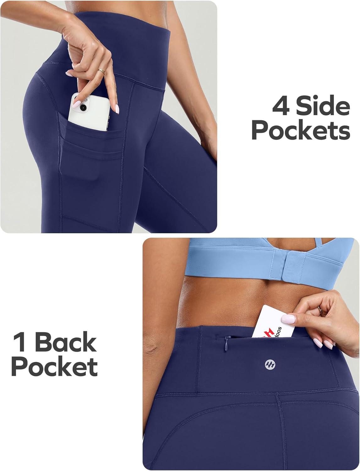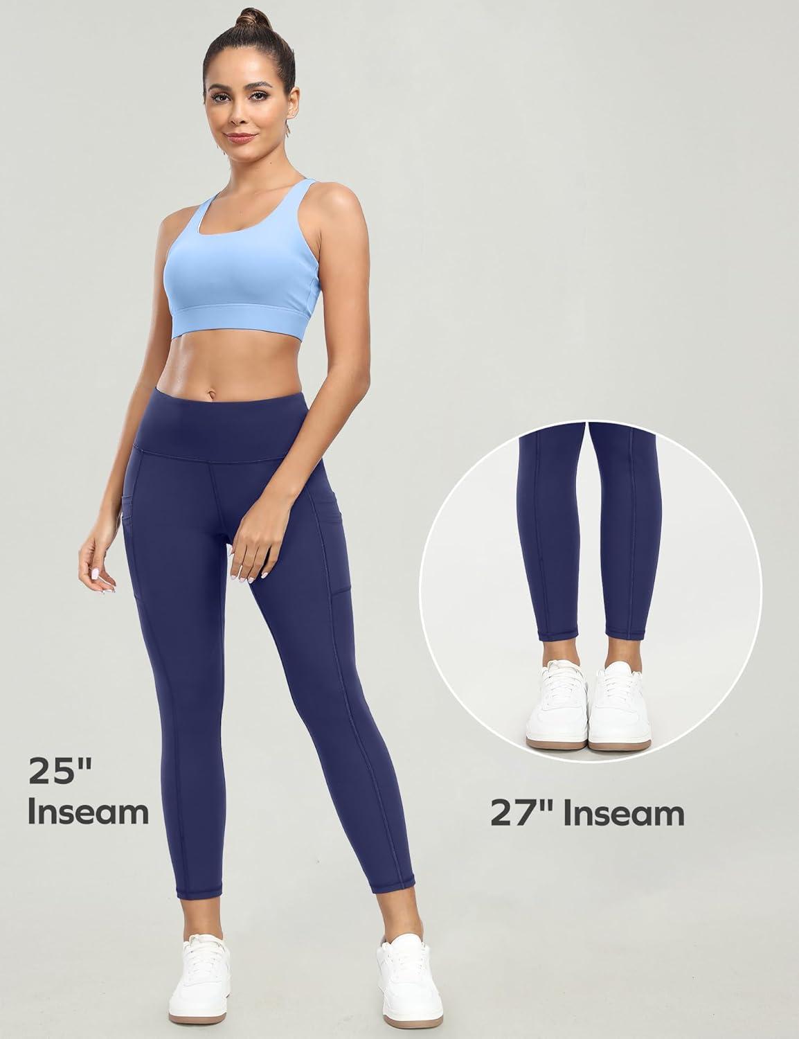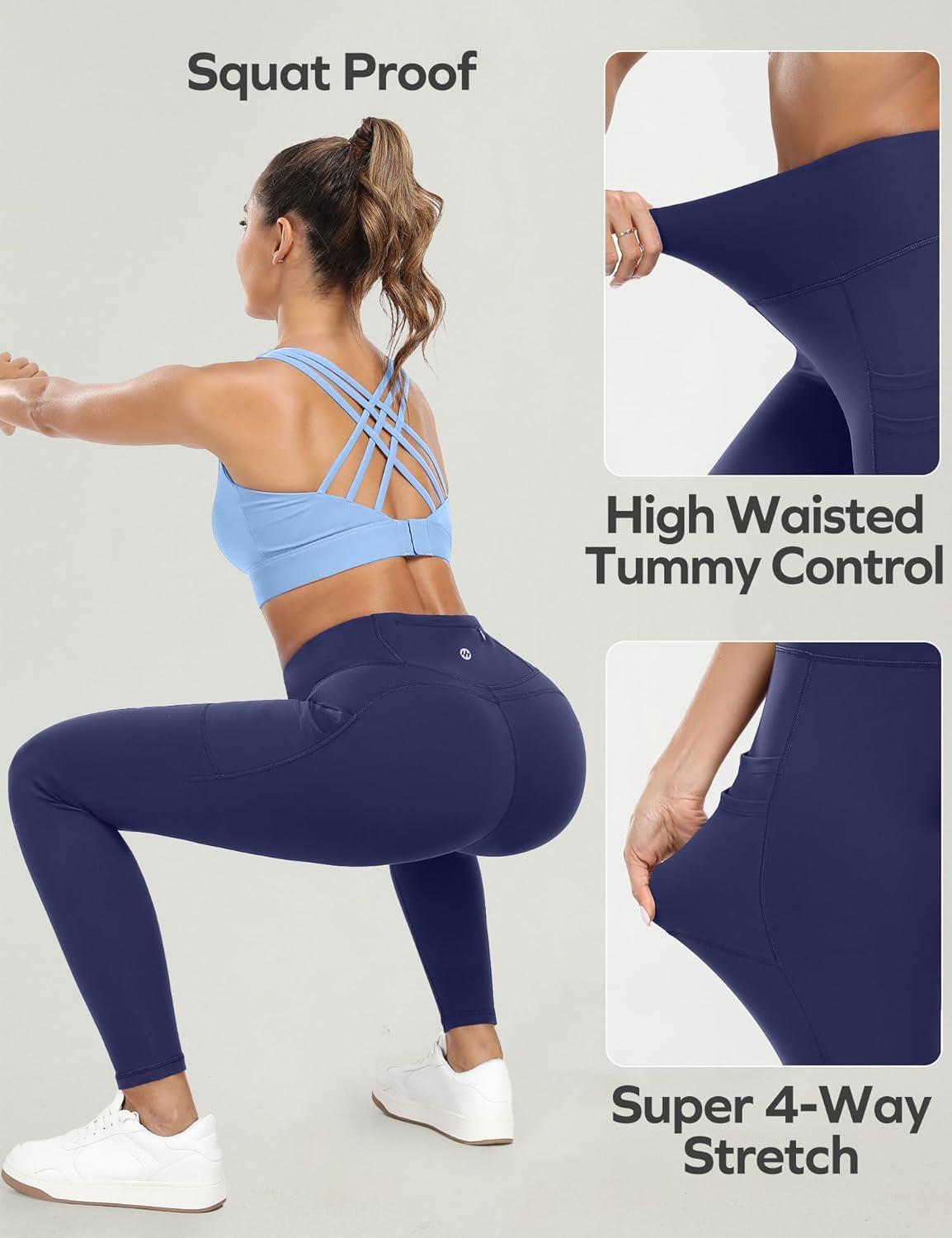 Ewedoos Leggings with 5 Pockets for Women Yoga Pants 25″/ 27″ Workout Leggings for Women Tummy Control Running(Navy)