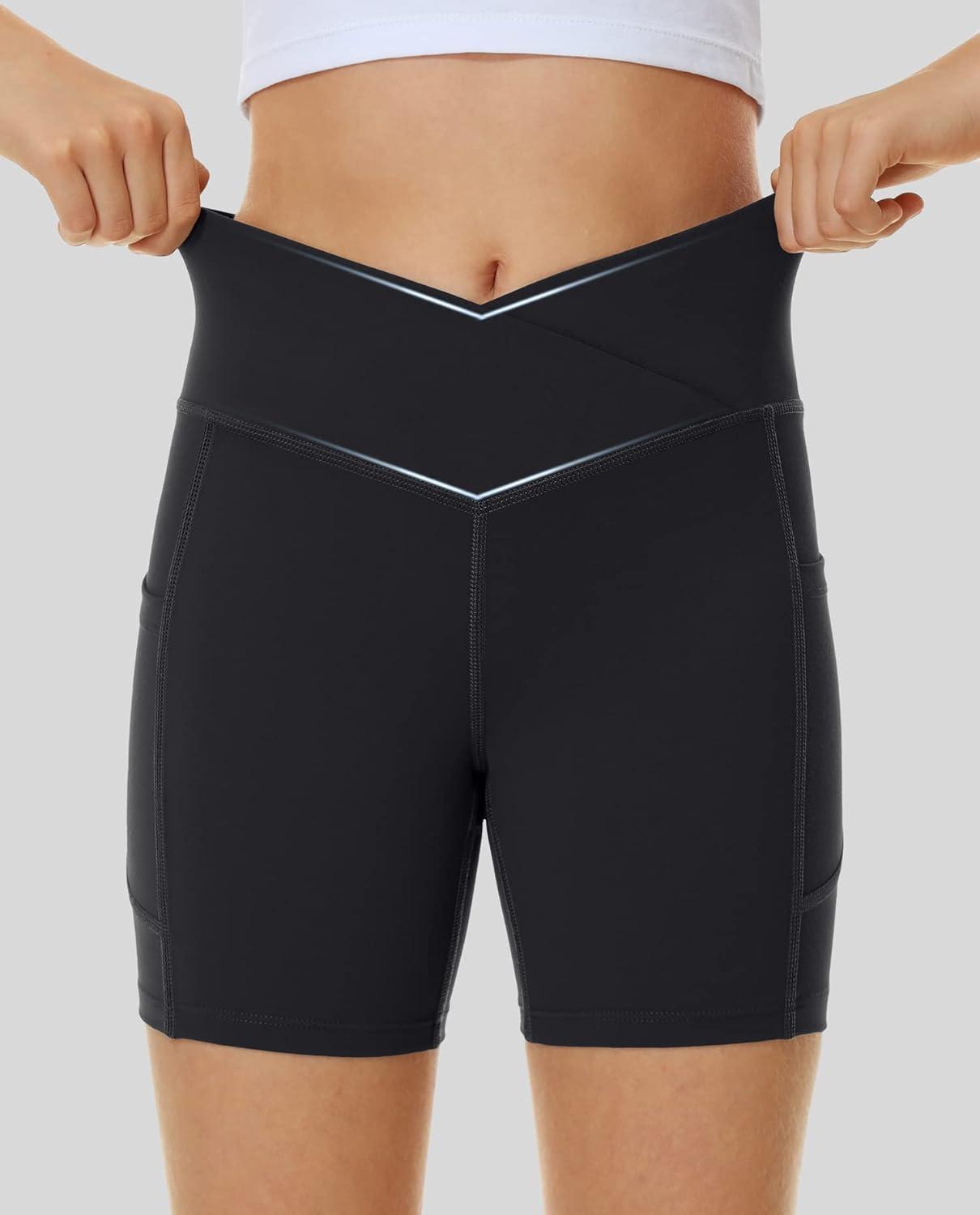 Ewedoos Biker Shorts Women Tummy Control Workout Shorts with 3 Pockets High Waisted Compression Gym Running Yoga Shorts Women(Black)
