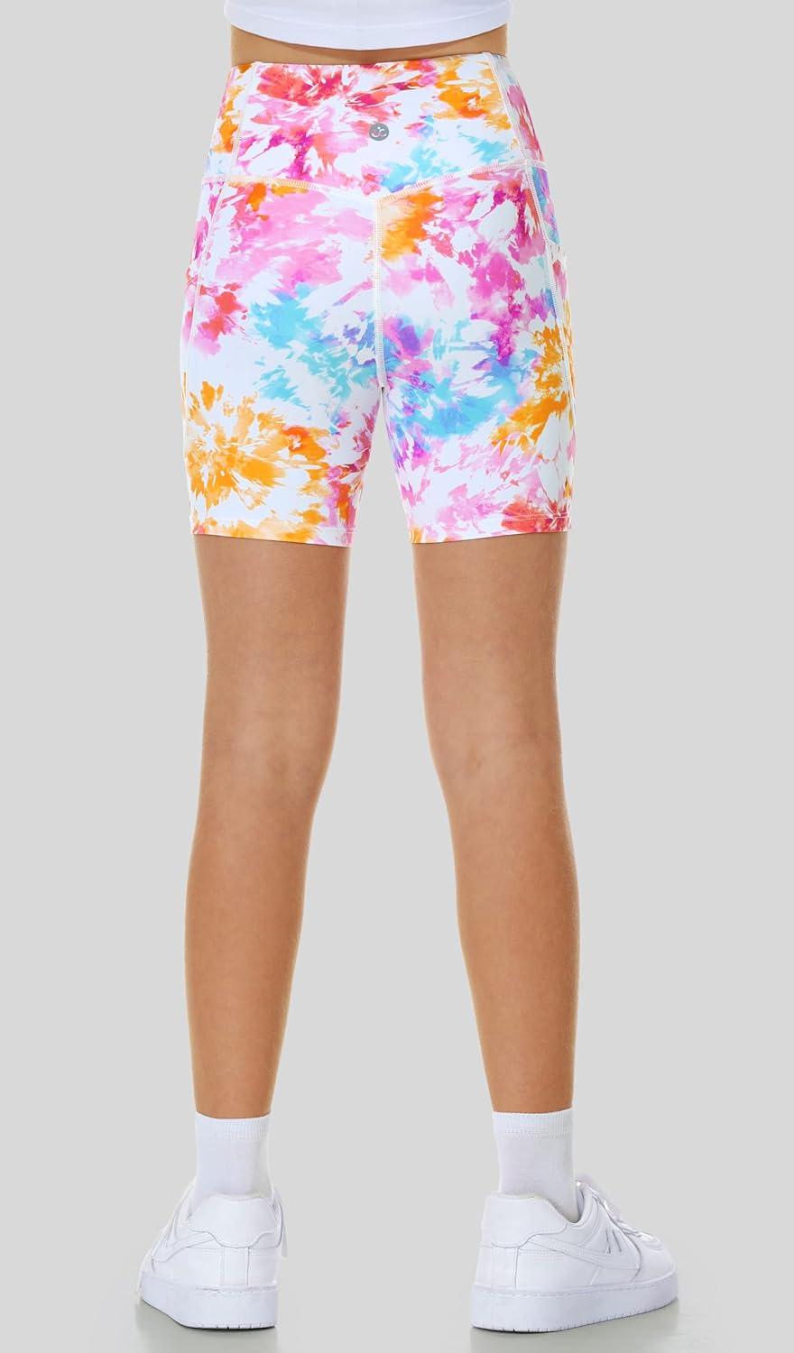 Ewedoos Girls Volleyball Athletic Shorts with Pockets – Preppy Spandex Dance Shorts for Teen Girls(Flower Tie Dye)