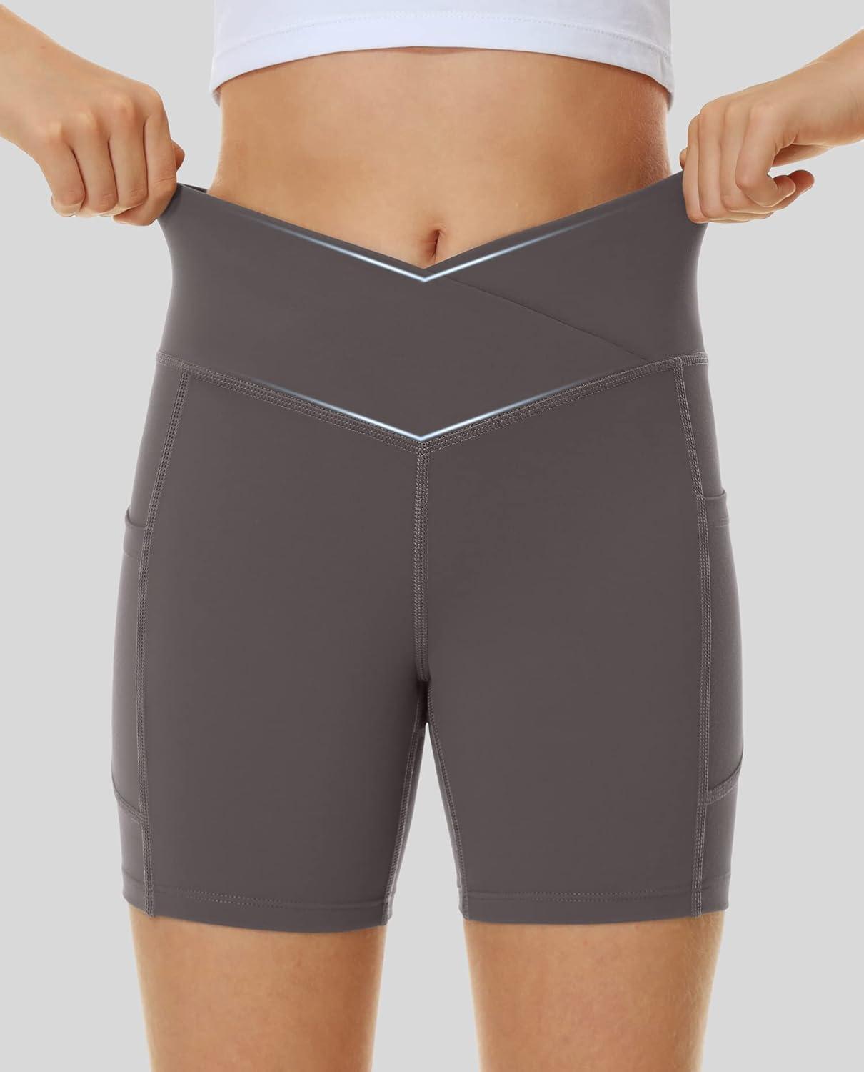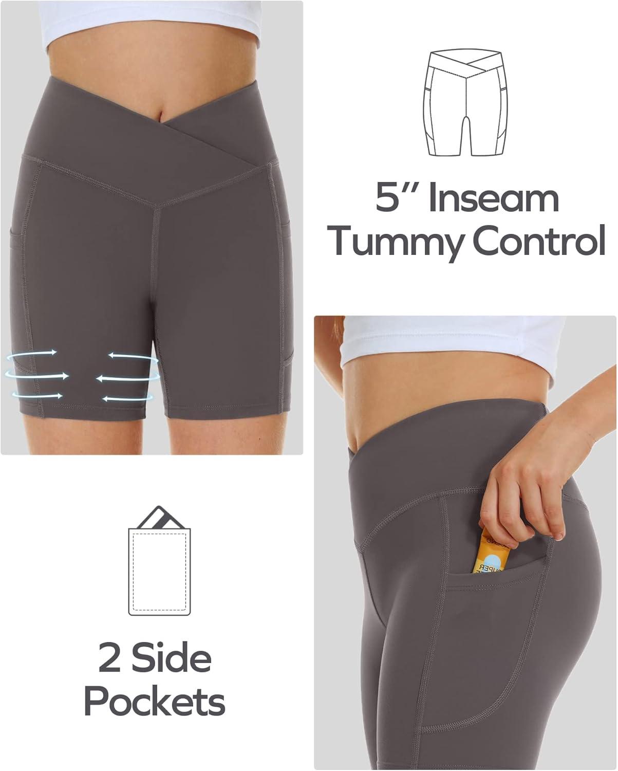 Ewedoos Biker Shorts Women Tummy Control Workout Shorts with 3 Pockets High Waisted Compression Gym Running Yoga Shorts Women(Charcoal)