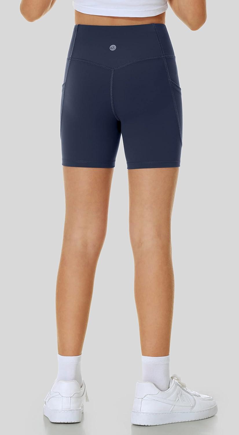 Ewedoos Girls Volleyball Athletic Shorts with Pockets – Preppy Spandex Dance Shorts for Teen Girls(Navy)