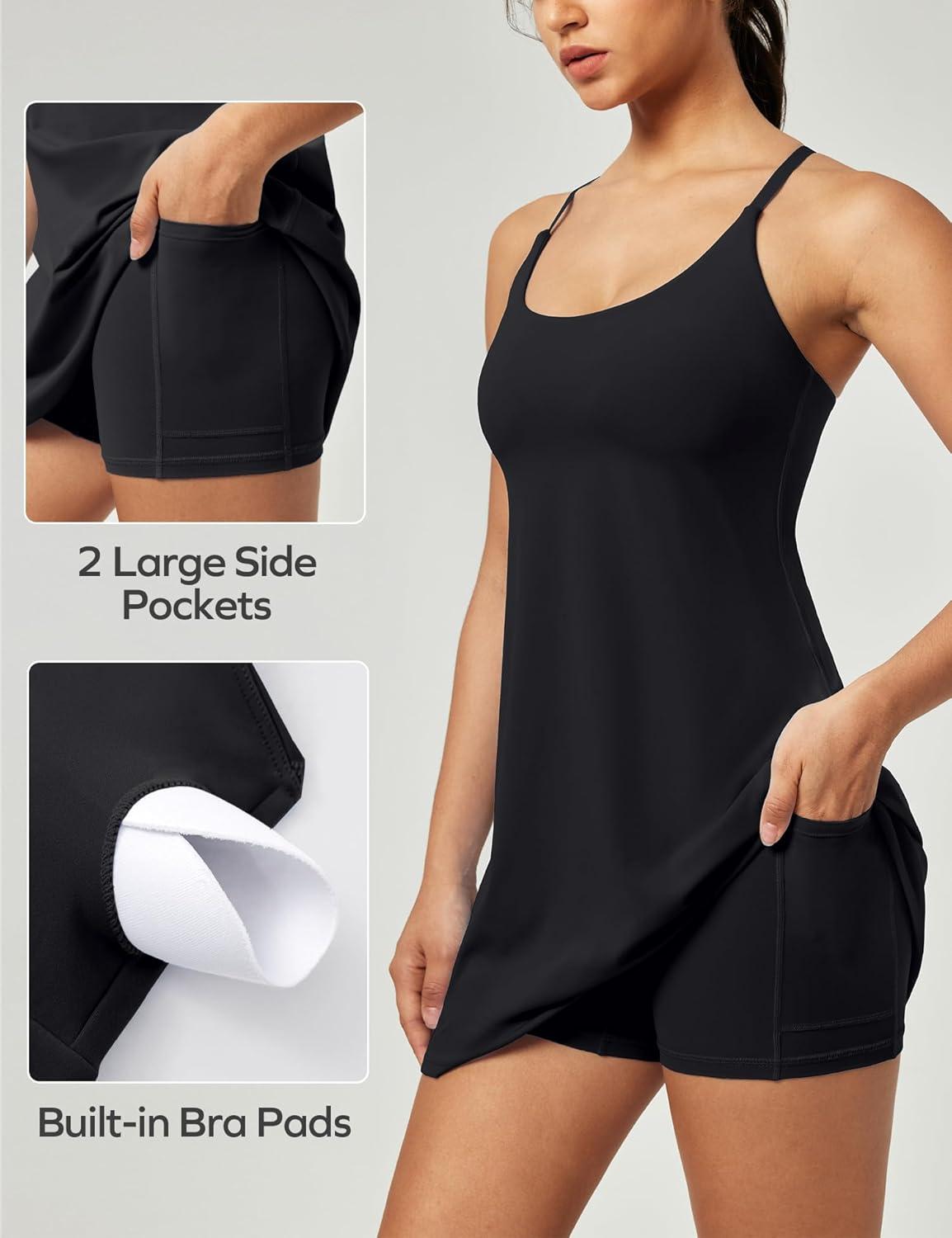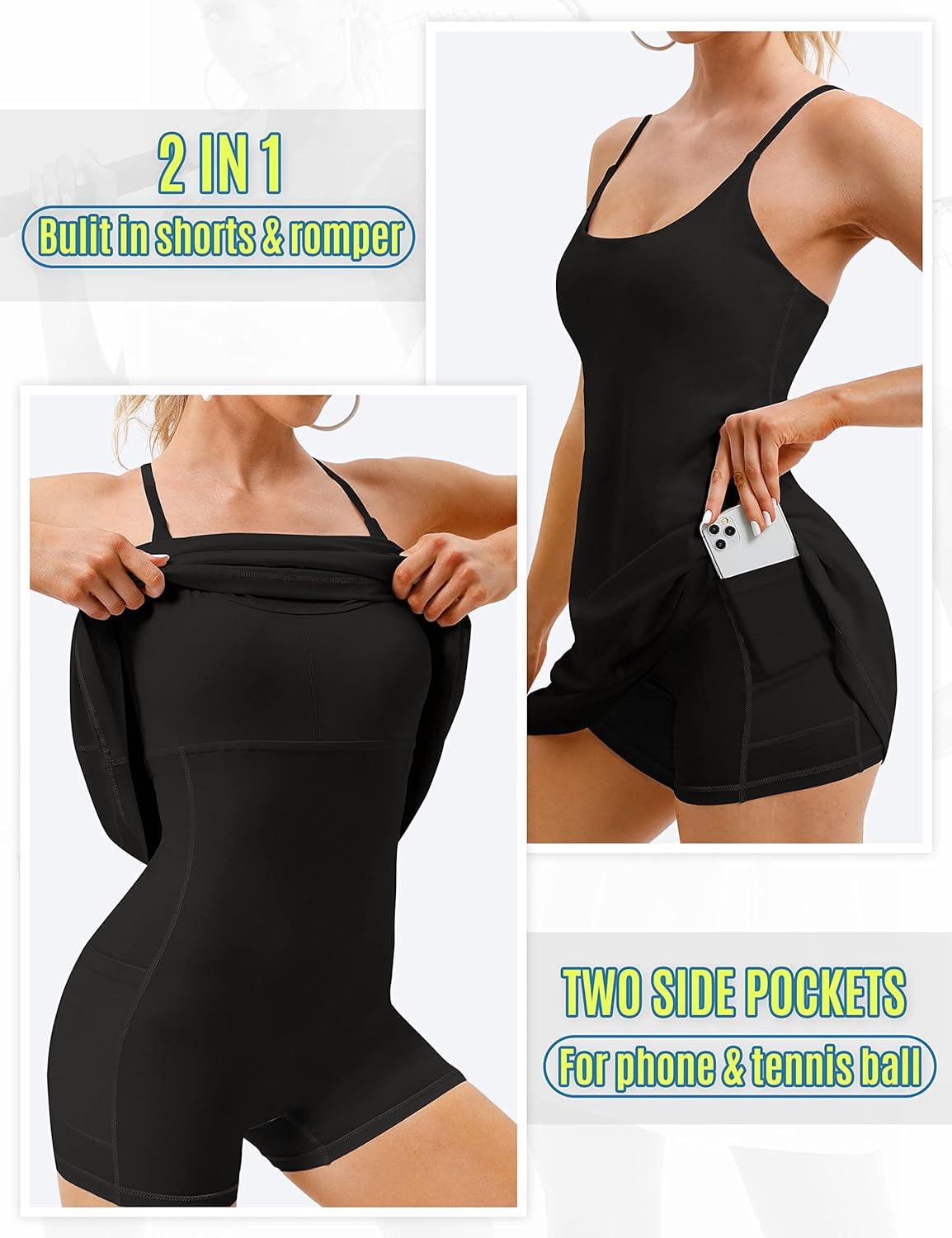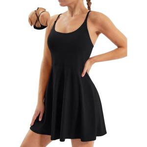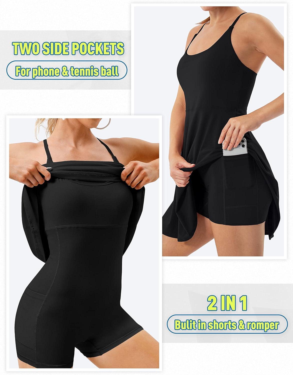 Ewedoos Tennis Dress Womens Athletic Dress Built in Shorts & Bra Adjustable Straps Workout Exercise Golf Summer Dress(Black)