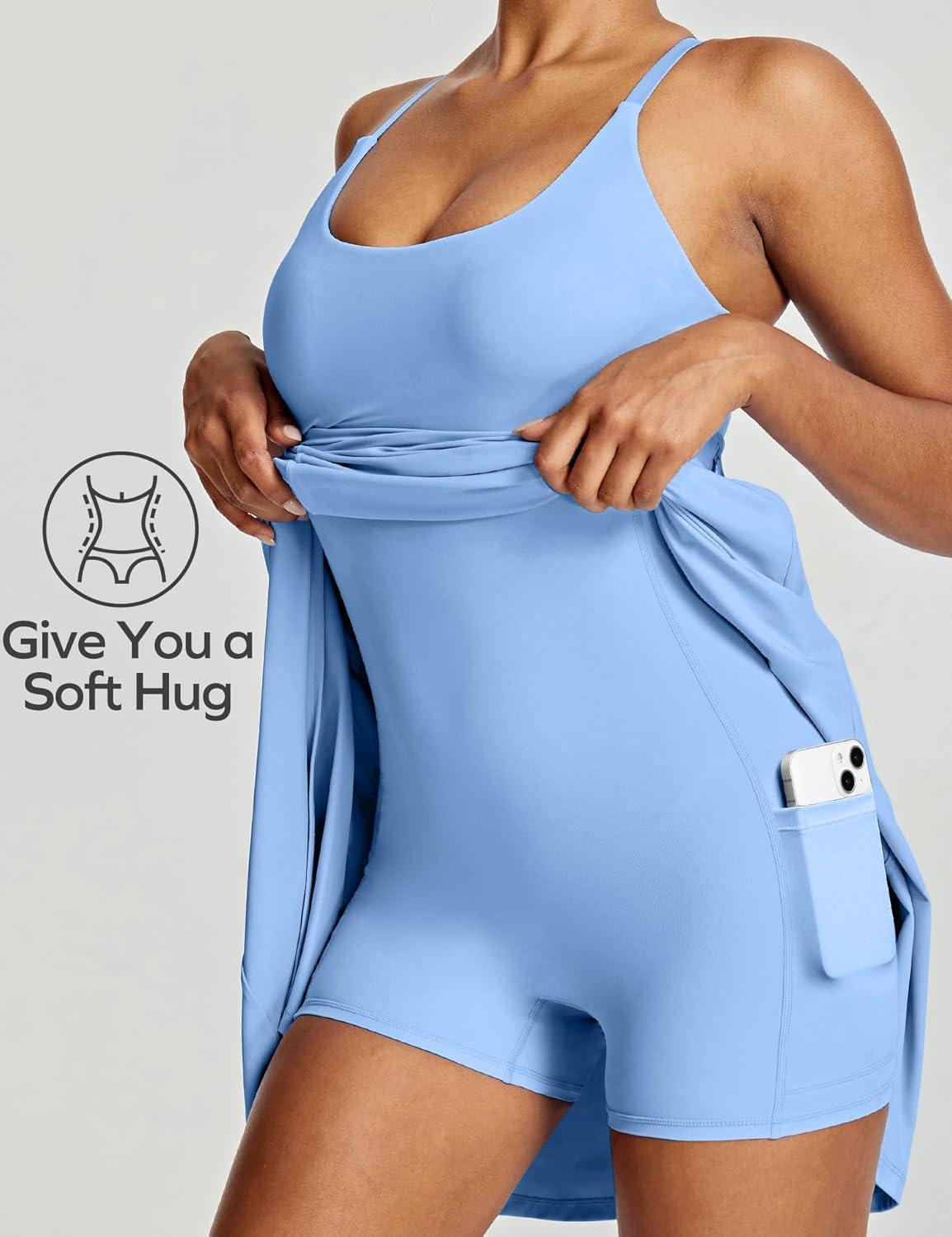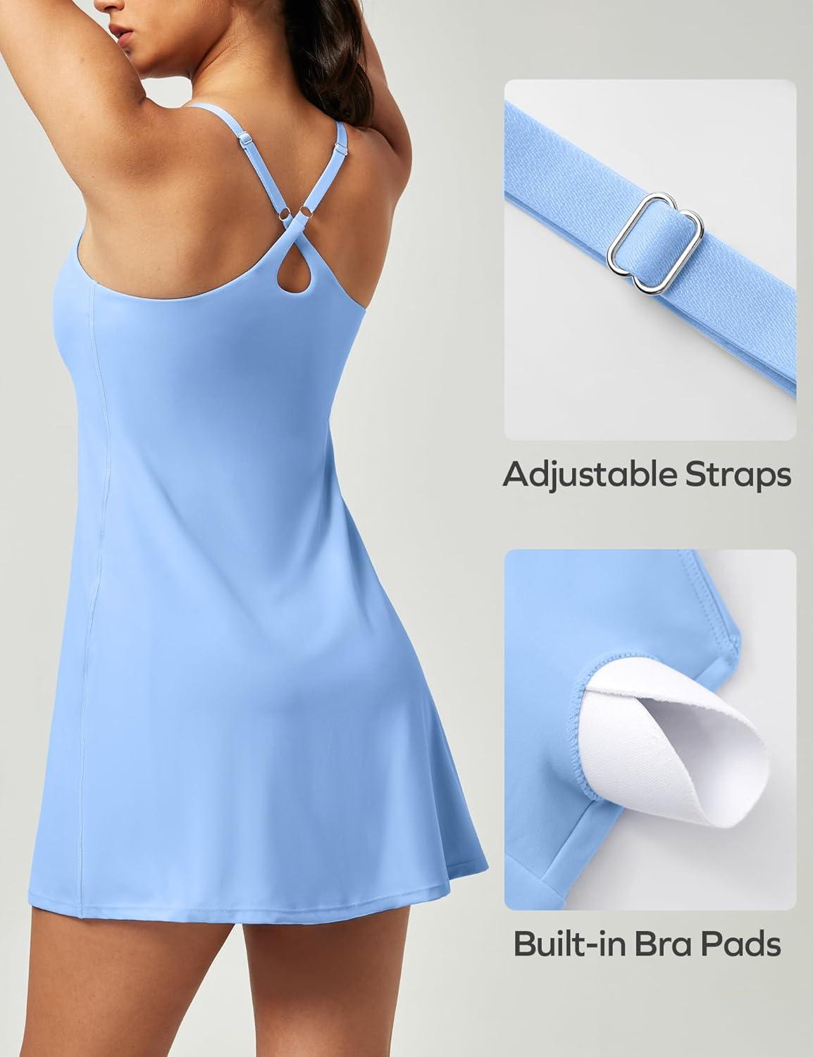 Ewedoos Athletic Tennis Dress for Women with Shorts Underneath Easy Peezy U Neck Adjustable Straps Active Workout Dress(Light Blue-easy Peezy)