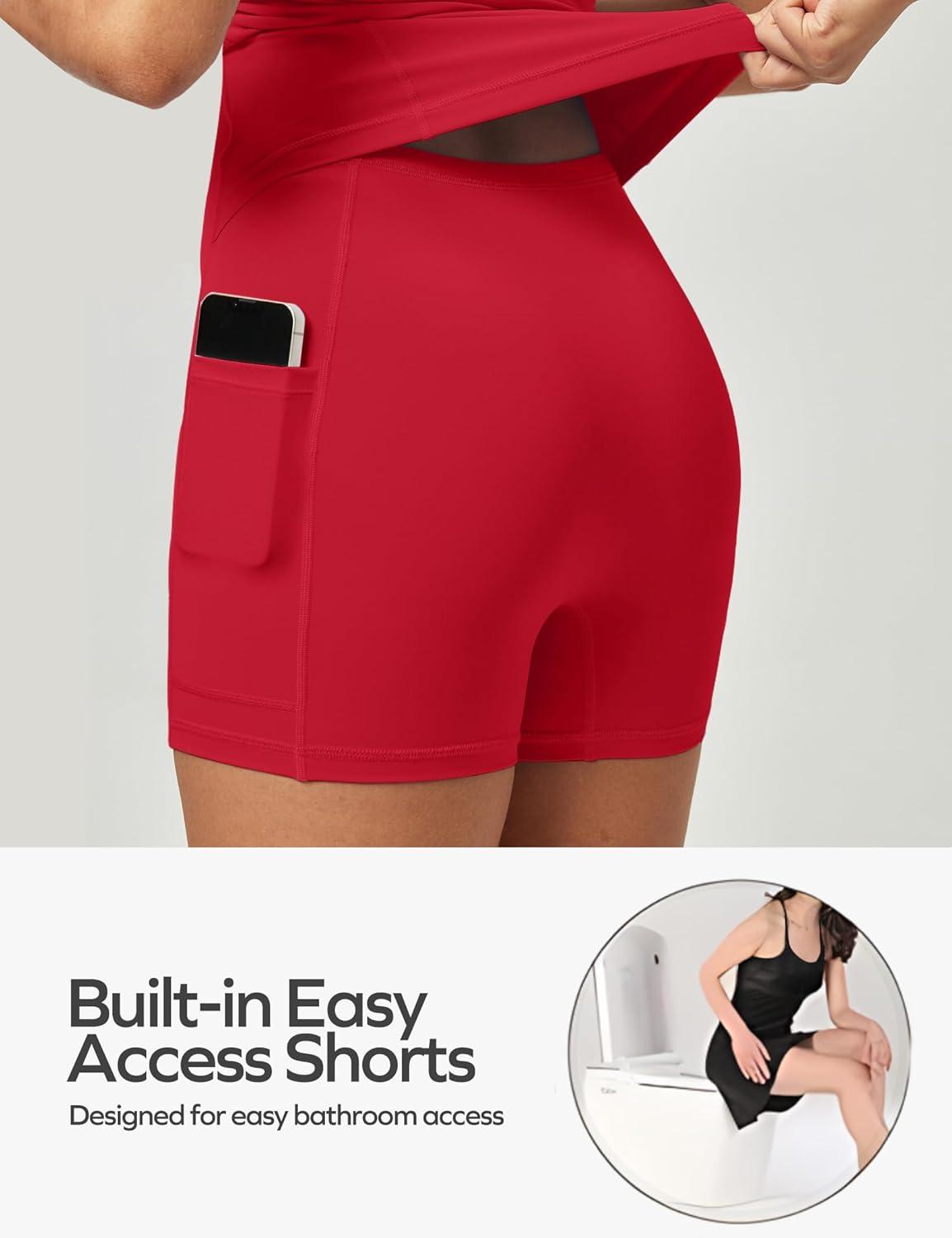 Ewedoos Athletic Tennis Dress for Women with Shorts Underneath Easy Peezy U Neck Adjustable Straps Active Workout Dress(Red-easy Peezy)