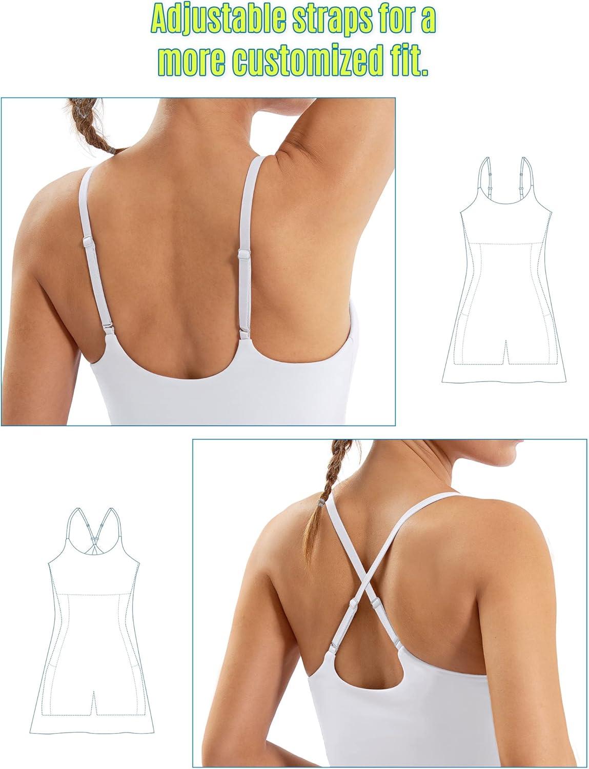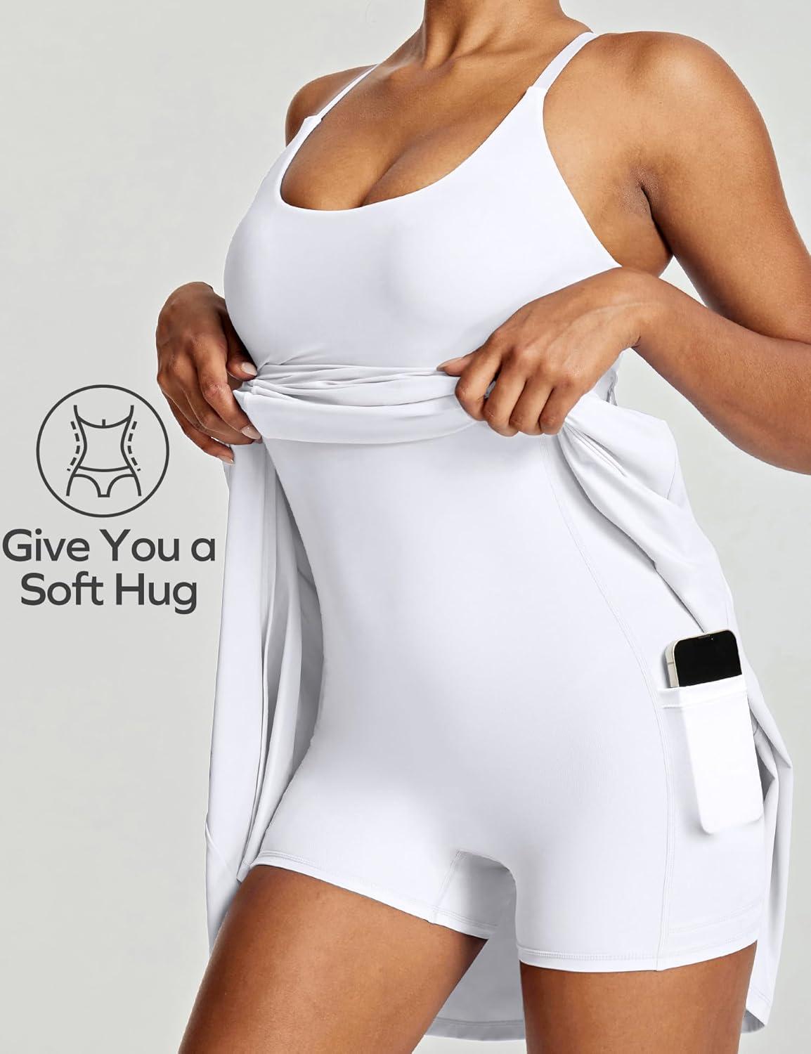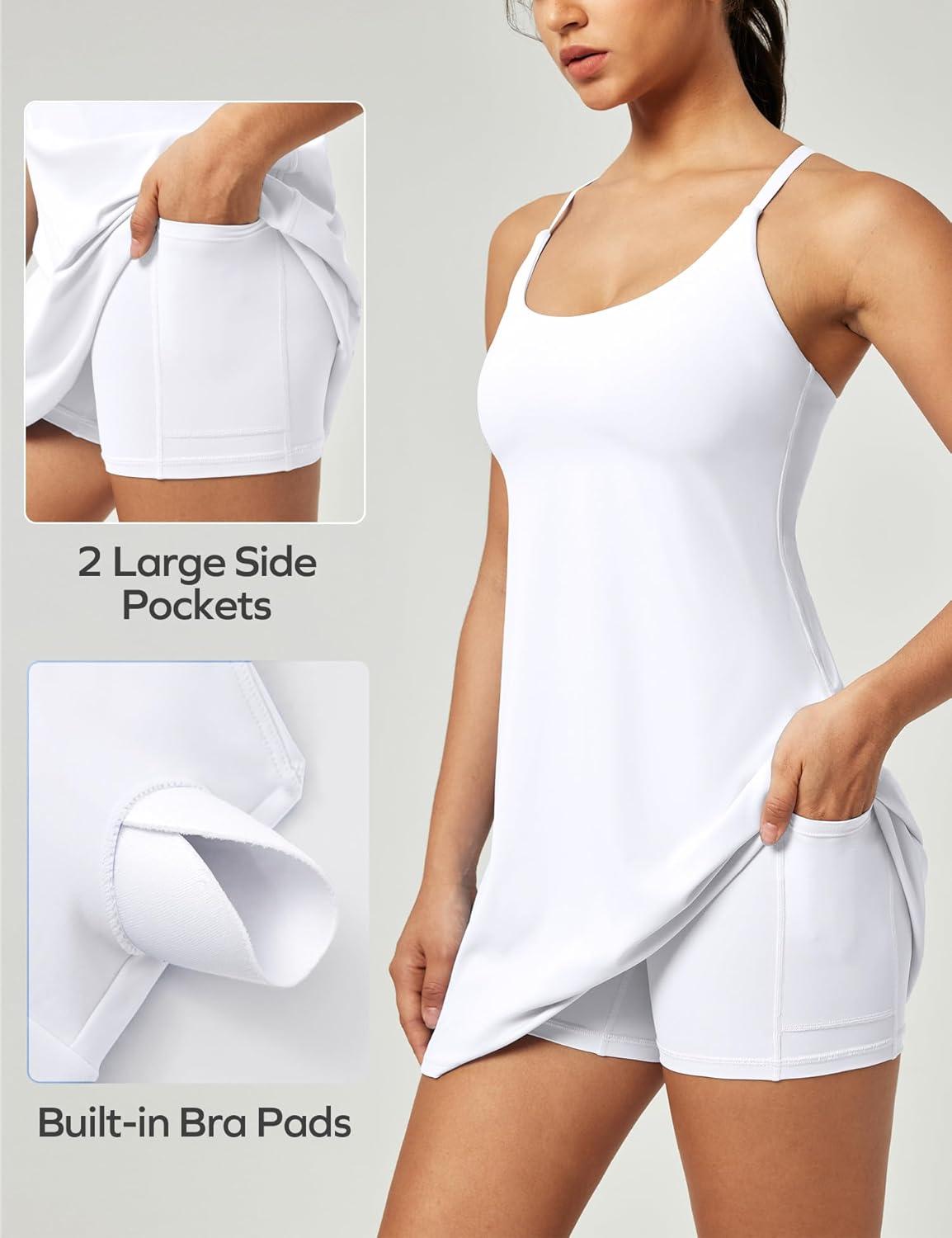 Ewedoos Athletic Tennis Dress for Women with Shorts Underneath Easy Peezy U Neck Adjustable Straps Active Workout Dress(White-easy Peezy)