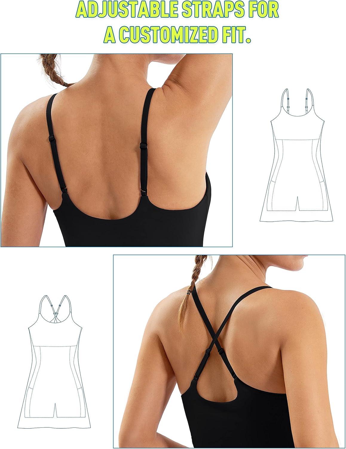 Athletic Dress with Built in Shorts & Bra Adjustable Straps Workout Dress for Tennis Golf Midi Dresses for Women(Black)