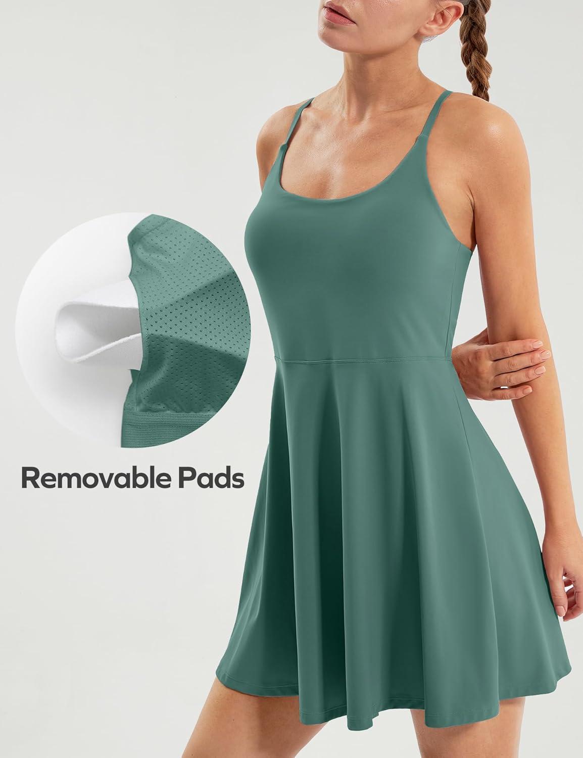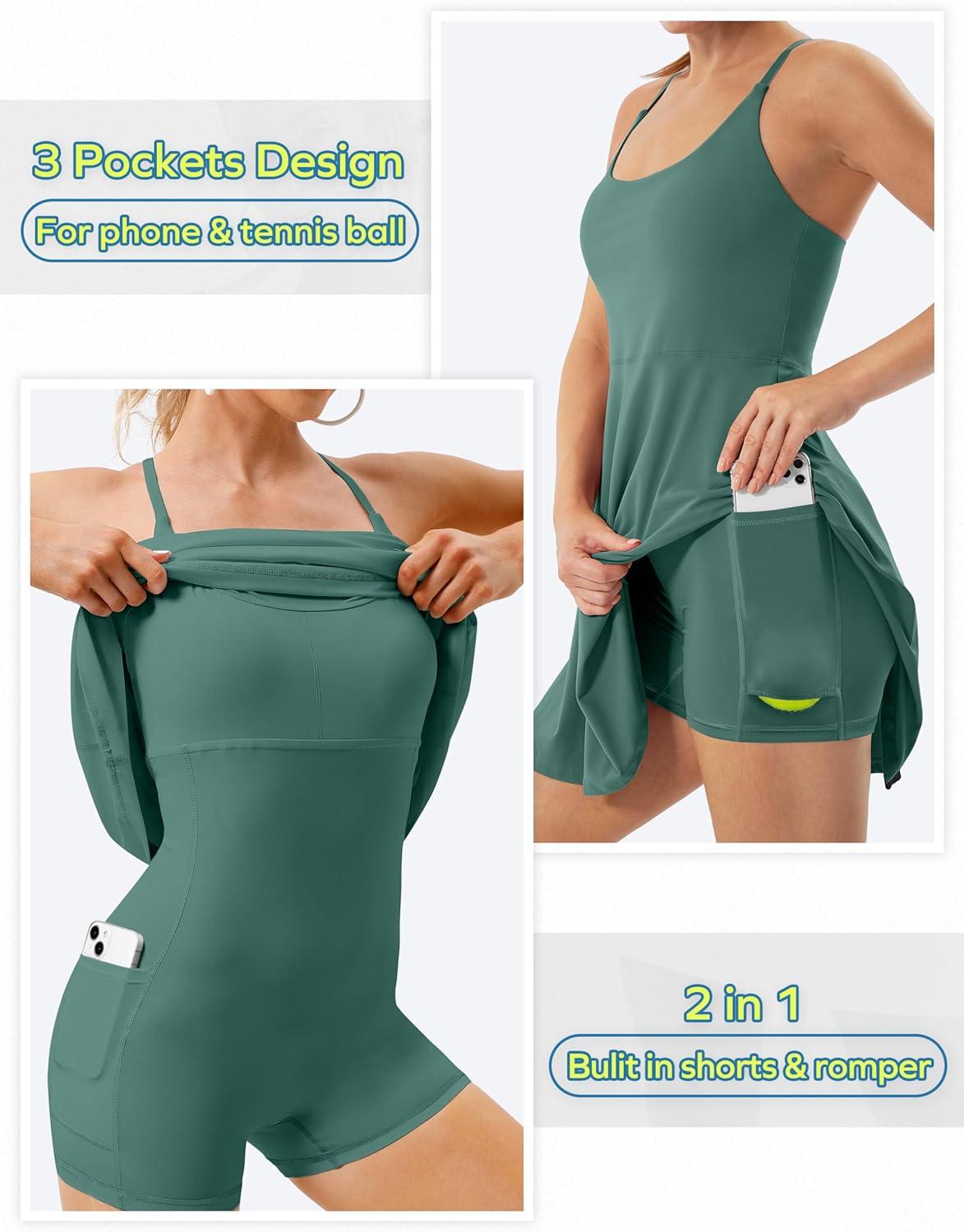 Ewedoos Tennis Dress Womens Athletic Dress Built in Shorts & Bra Adjustable Straps Workout Exercise Golf Summer Dress(Green)