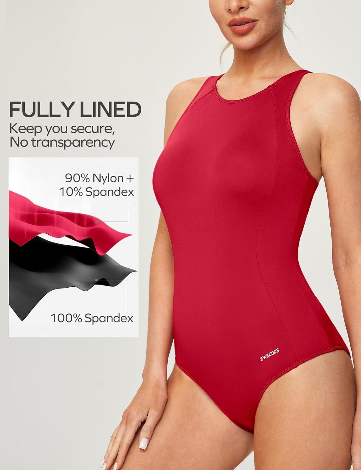 Ewedoos Athletic Swimsuit for Women Adjustable Strap One Piece Swimsuit Racerback Bathing Suit for Women Tummy Control Red