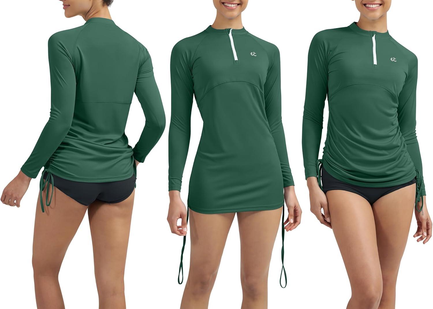 Ewedoos Rash Guard for Women UPF 50+ Sun Protection Clothing Swim Shirts for Woman SPF Shirts Long Sleeve UV Sun Shirts(Dark Green)