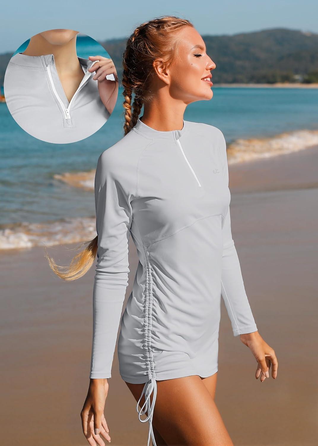 Ewedoos Rash Guard for Women UPF 50+ Sun Protection Clothing Swim Shirts for Woman SPF Shirts Long Sleeve UV Sun Shirts(Grey)