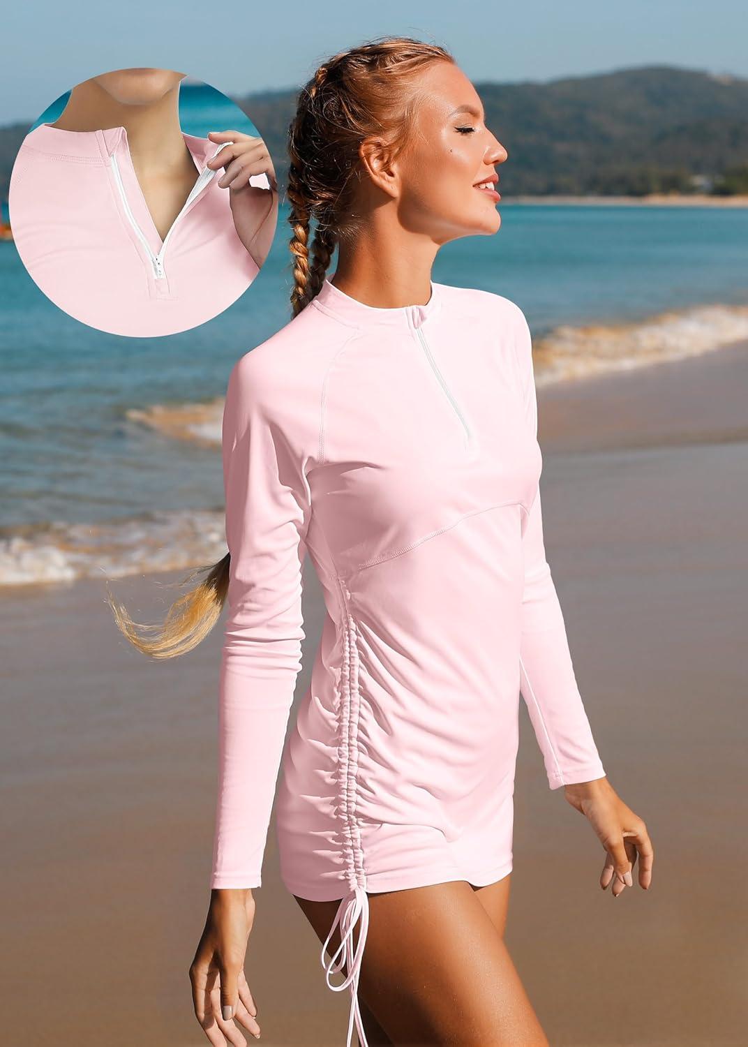 Ewedoos Rash Guard for Women UPF 50+ Sun Protection Clothing Swim Shirts for Woman SPF Shirts Long Sleeve UV Sun Shirts(Pink)