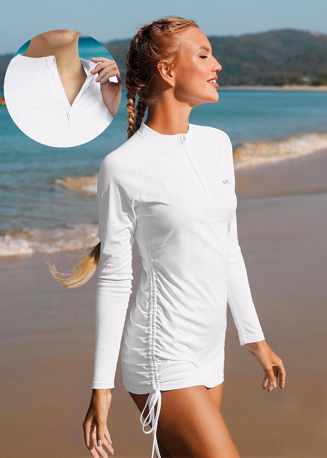 Ewedoos Rash Guard for Women UPF 50+ Sun Protection Clothing Swim Shirts for Woman SPF Shirts Long Sleeve UV Sun Shirts(White)