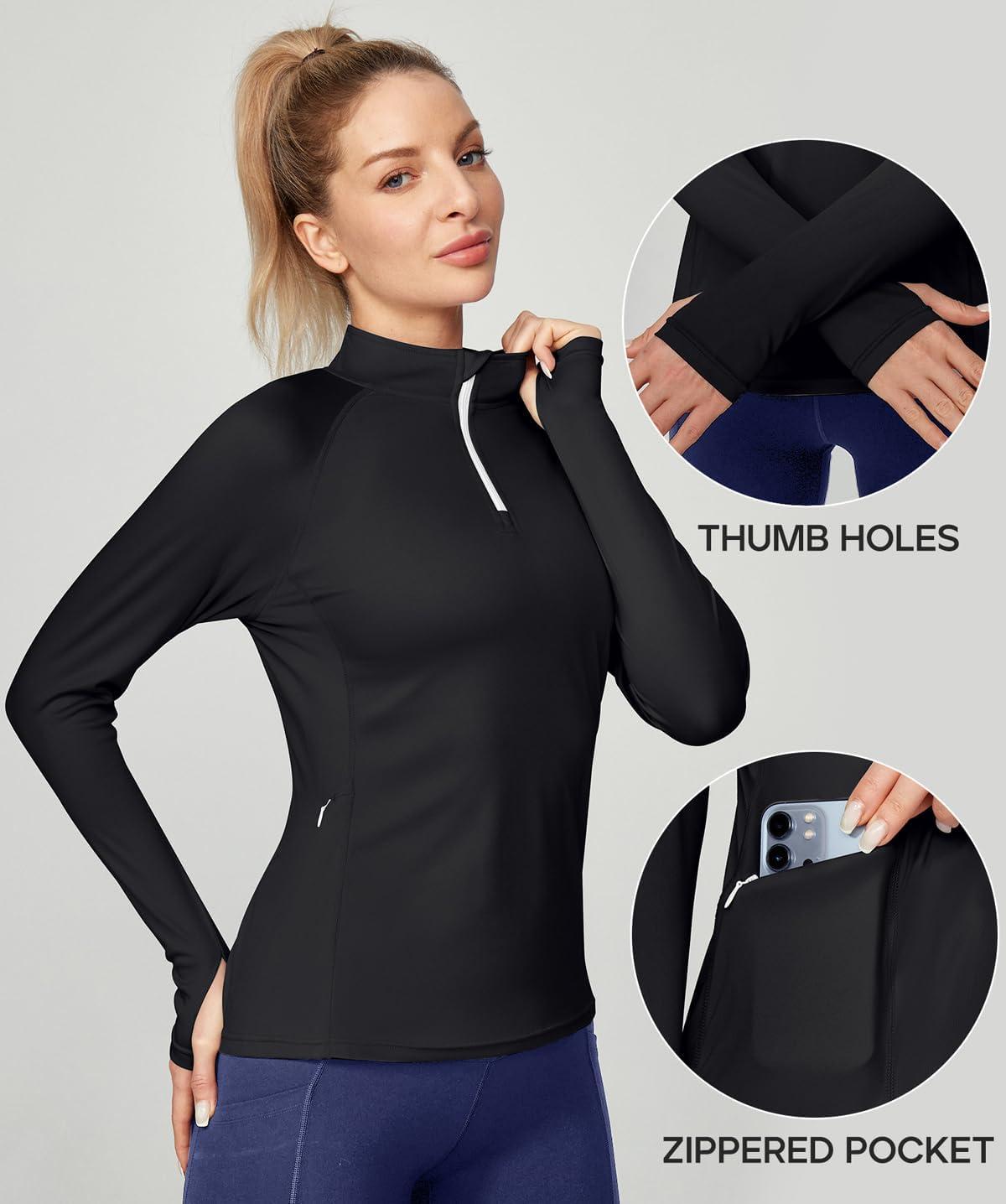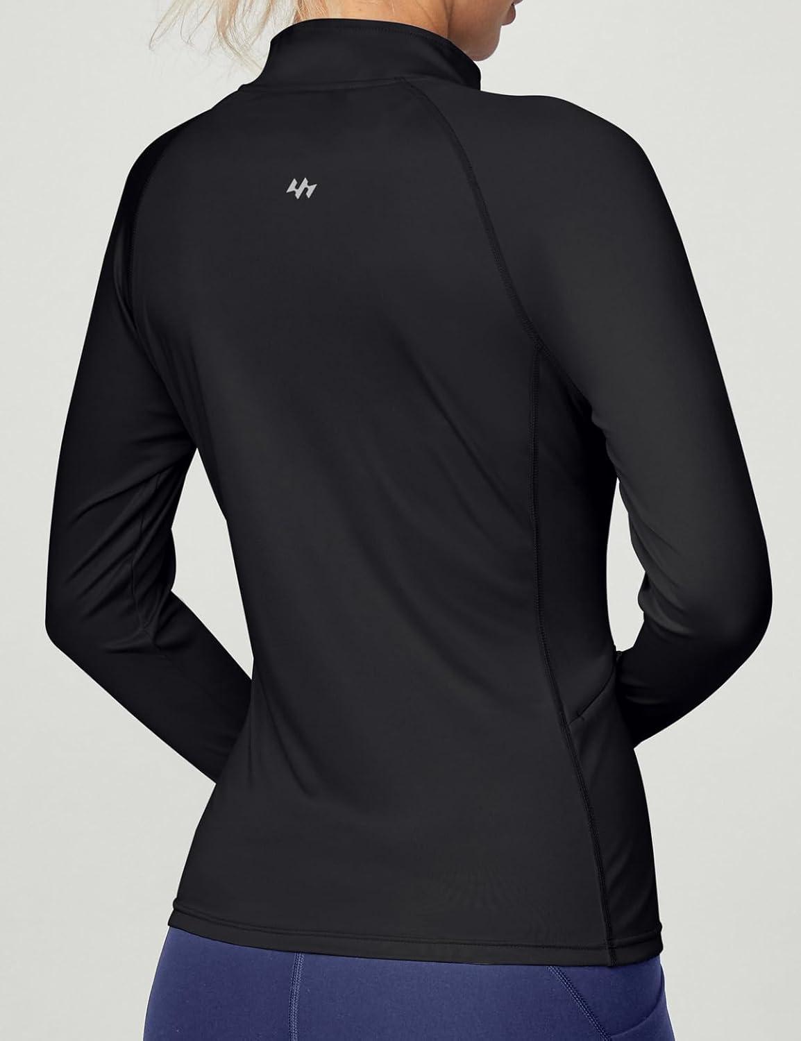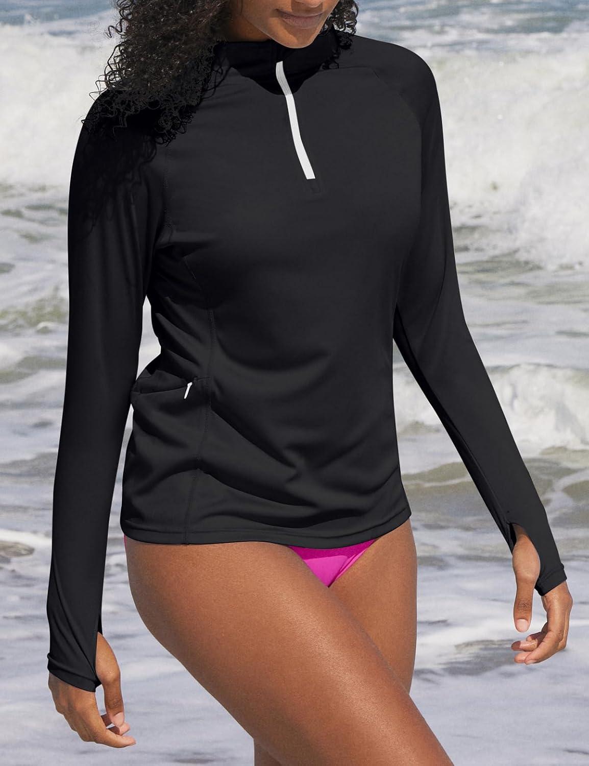 Ewedoos Rash Guard for Women UPF50+ UV Sun Protection Clothing SPF Shirts Long Sleeve Swim Shirts for Woman with Pockets(Black)