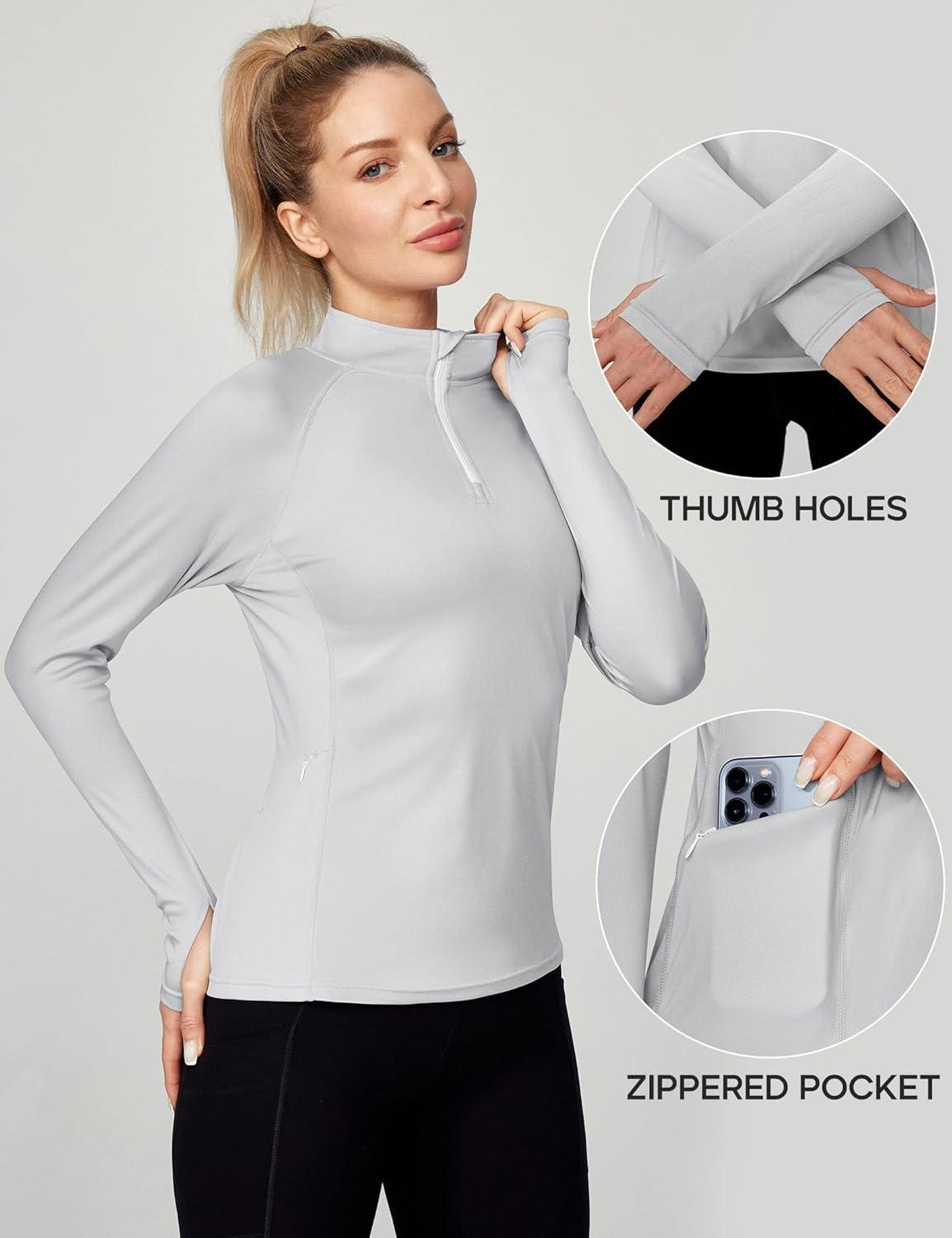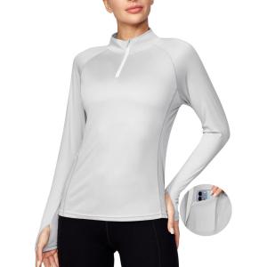Ewedoos Rash Guard for Women UPF50+ UV Sun Protection Clothing SPF Shirts Long Sleeve Swim Shirts for Woman with Pockets(Gray)