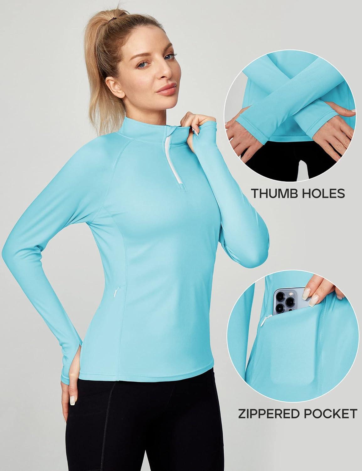 Ewedoos Rash Guard for Women UPF 50+ Sun Protection Clothing Swim Shirts for Woman SPF Shirts Long Sleeve UV Sun Shirts(Light Blue)