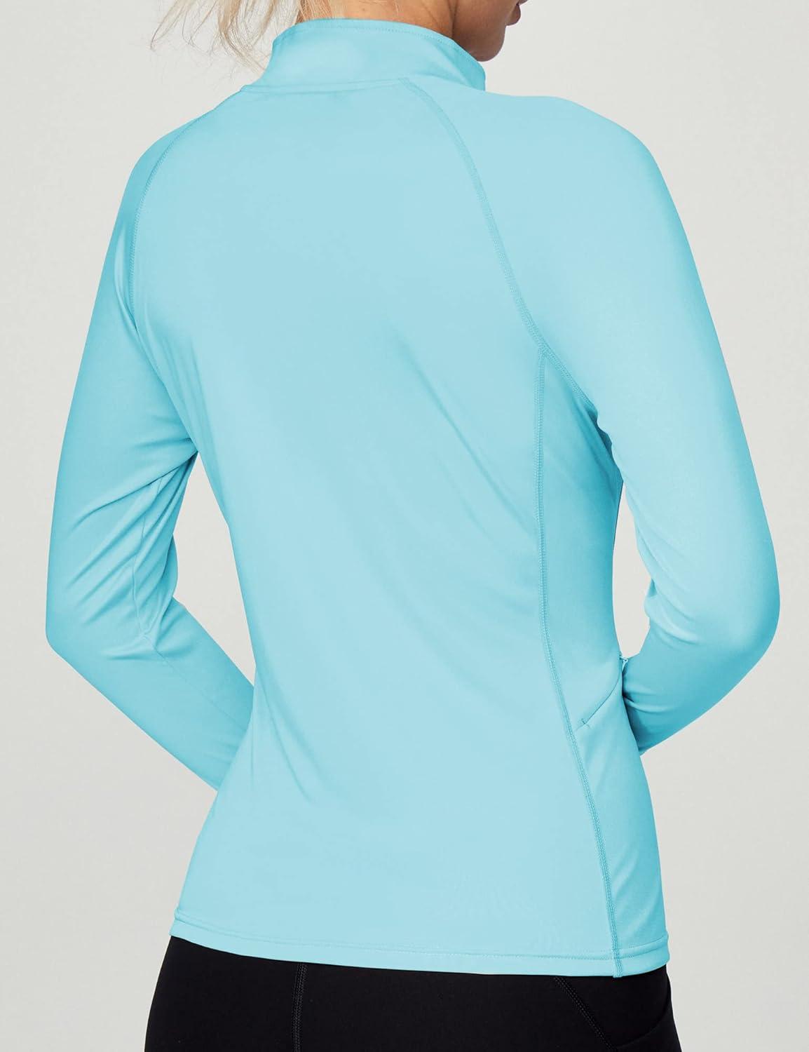 Ewedoos Rash Guard for Women UPF50+ UV Sun Protection Clothing SPF Shirts Long Sleeve Swim Shirts for Woman with Pockets(Light Blue)