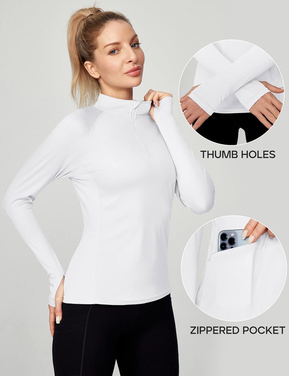 Ewedoos Rash Guard for Women UPF50+ UV Sun Protection Clothing SPF Shirts Long Sleeve Swim Shirts for Woman with Pockets(White)