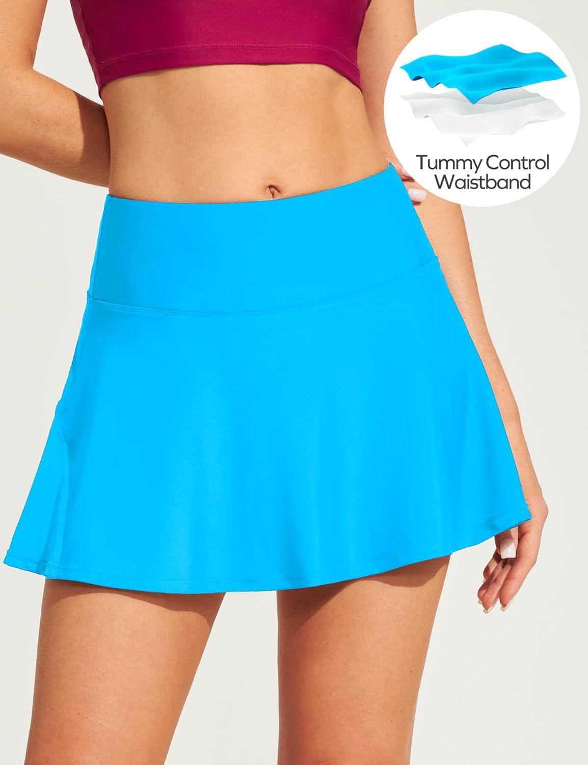 Ewedoos Swim Skirt Tummy Control Swim Skirt Bottoms for Women with Pockets Bathing Suit Swimsuit Tankini Swimming Skort(Bright Blue)