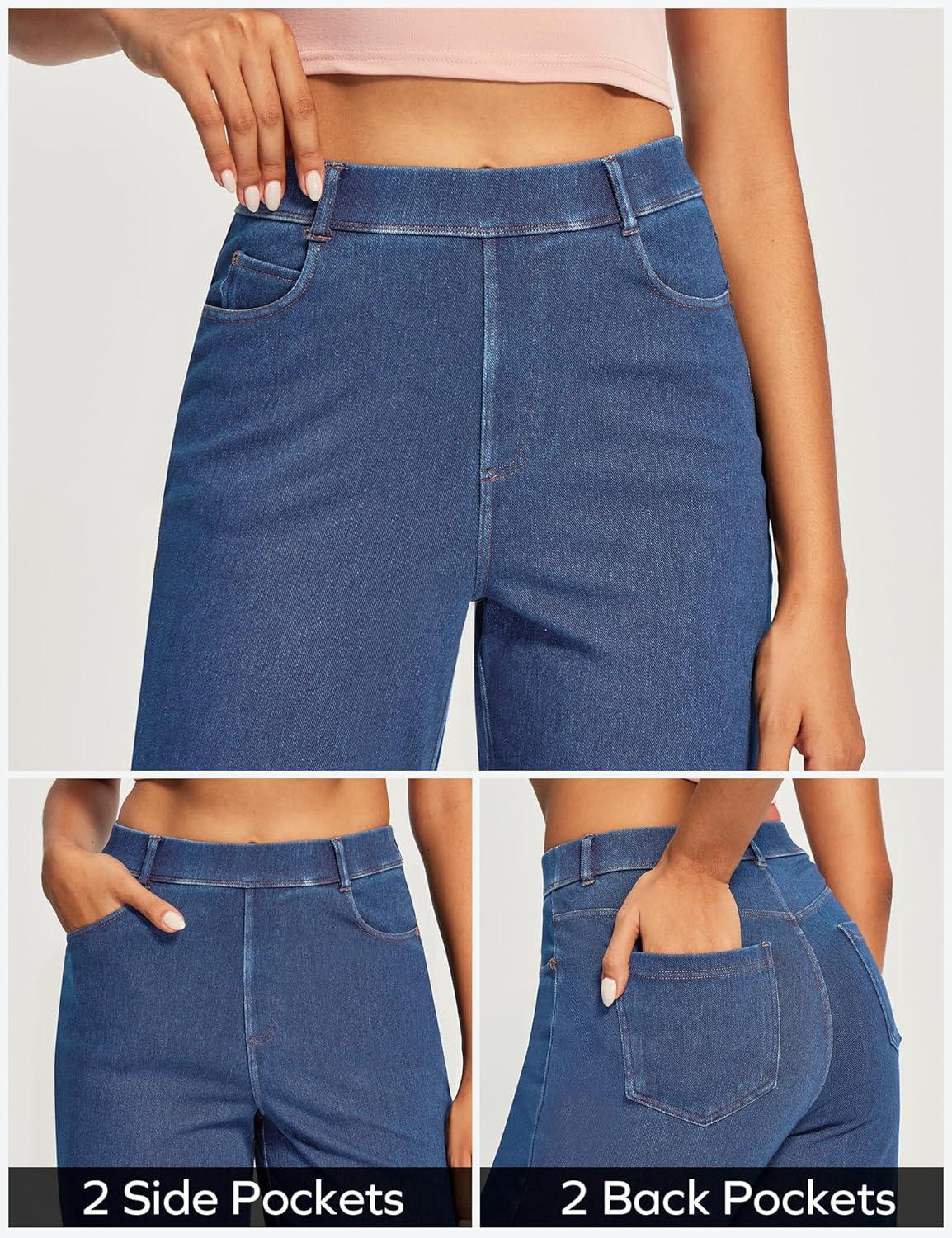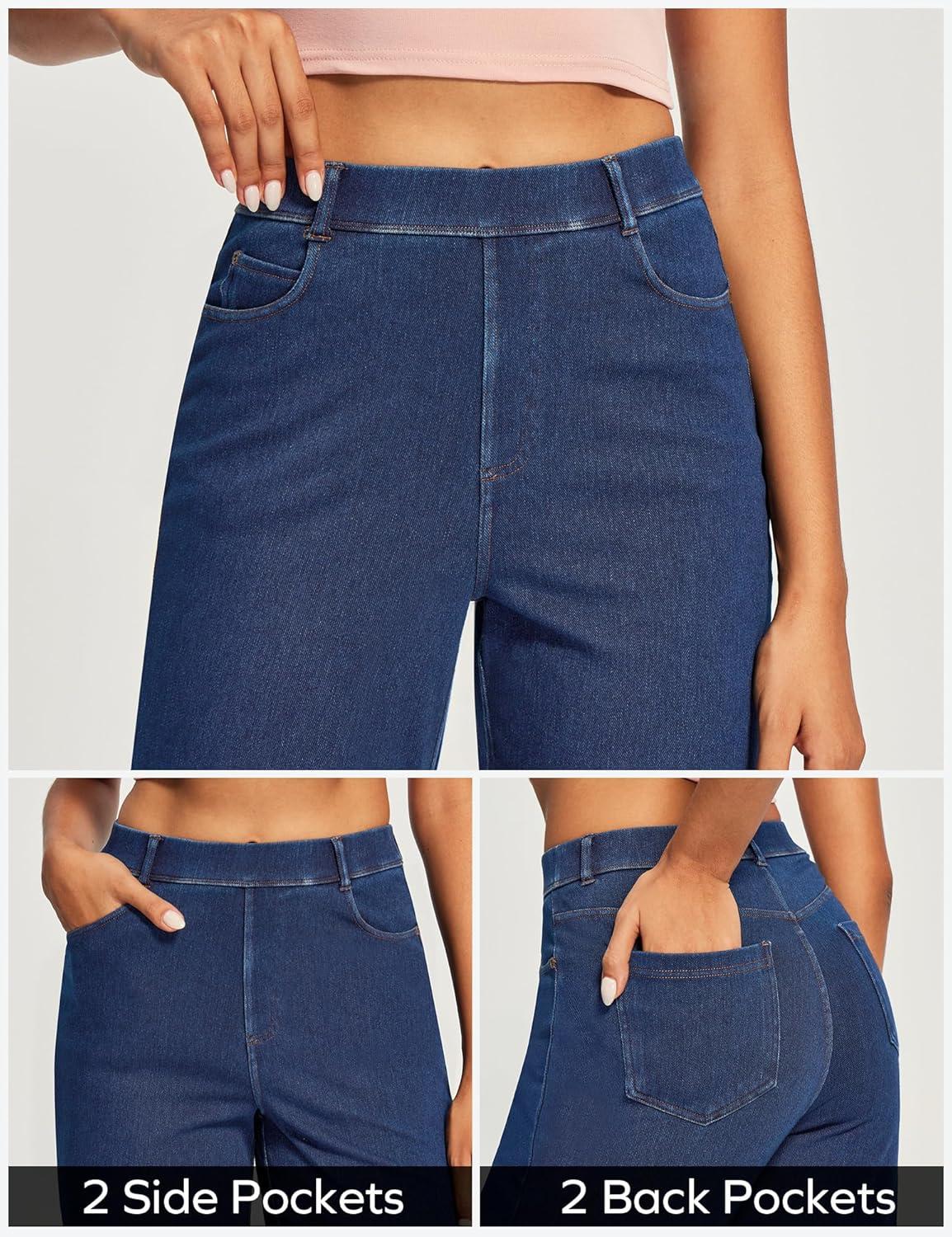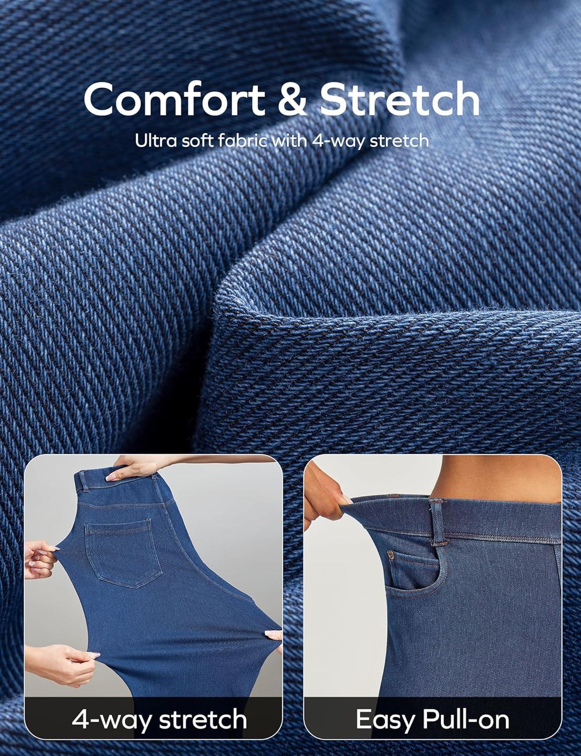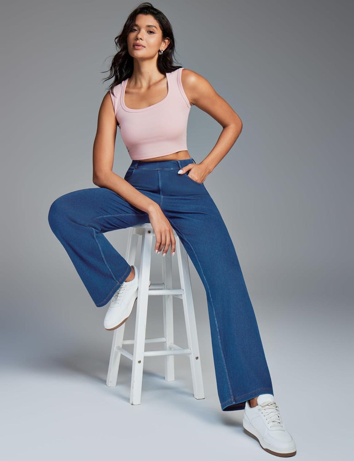 Ewedoos Wide Leg Jeans Woman High Waisted Stretchy Baggy Jeans for Women Pull On Trendy Womens Jeans Straight Denim Pants(Dark Blue-29” Petite)