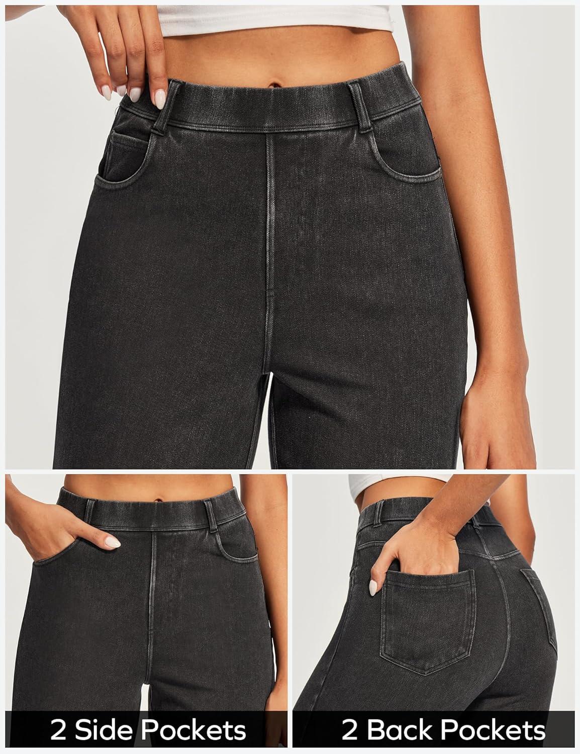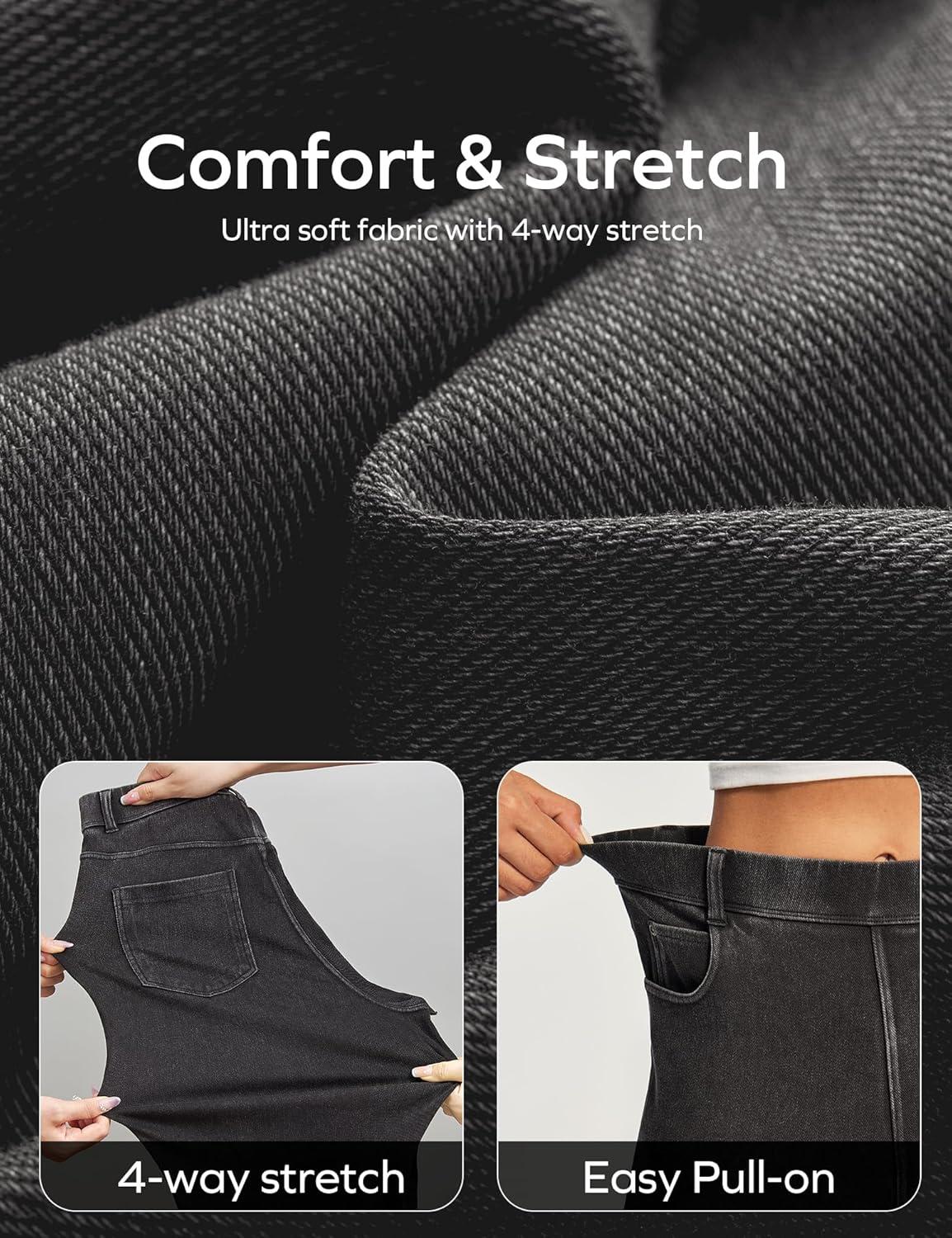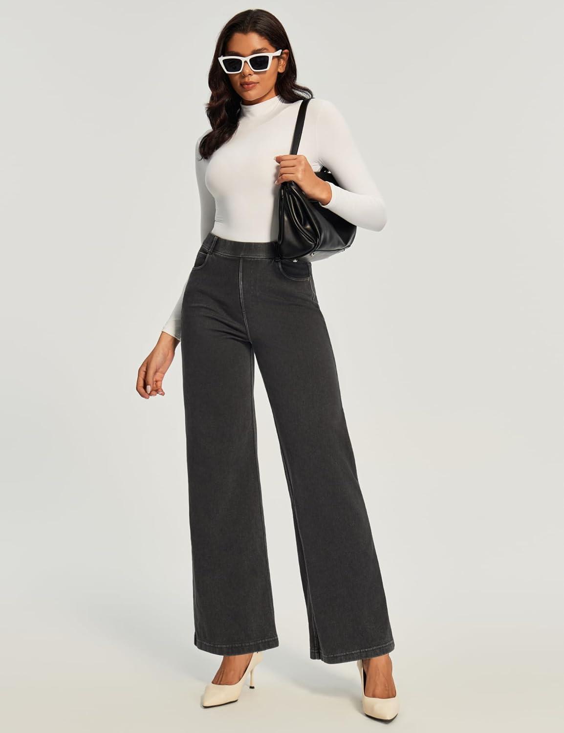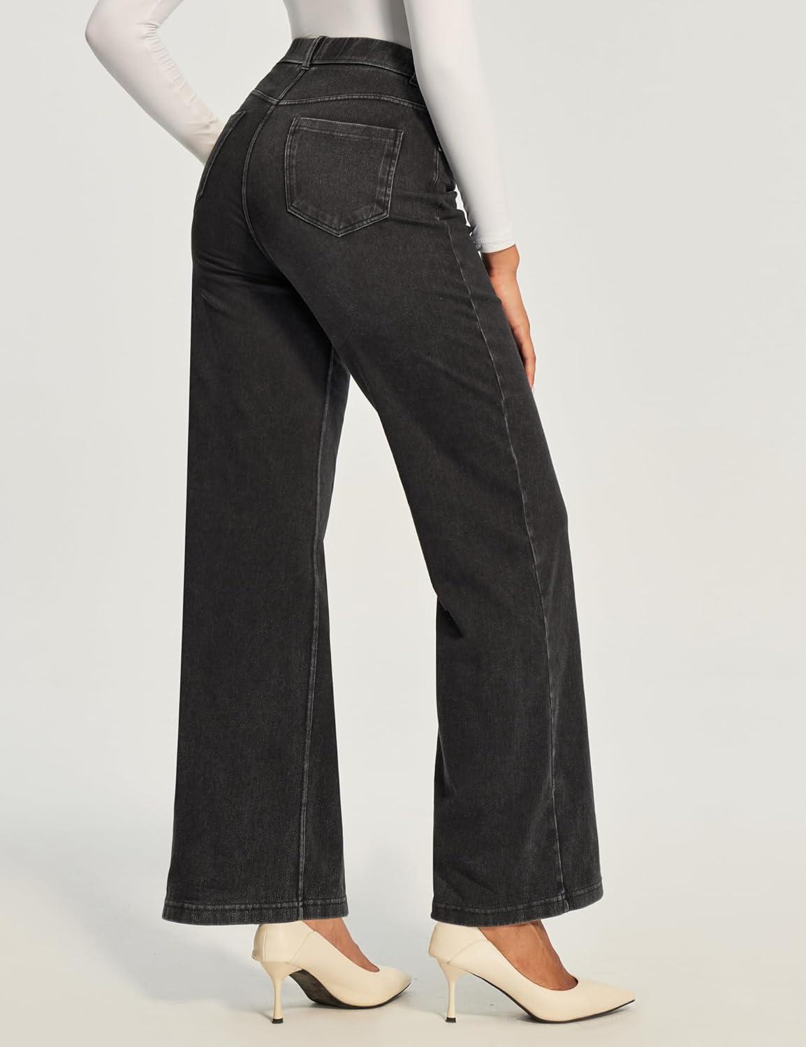 Ewedoos Wide Leg Jeans Woman High Waisted Stretchy Baggy Jeans for Women Pull On Trendy Womens Jeans Straight Denim Pants(Black-31” Regular)