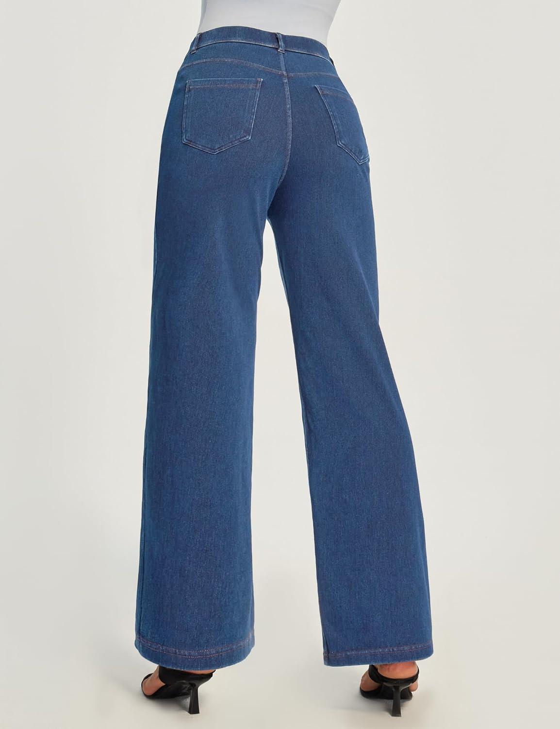 Ewedoos Wide Leg Jeans Woman High Waisted Stretchy Baggy Jeans for Women Pull On Trendy Womens Jeans Straight Denim Pants(Dark Blue-31” Regular)