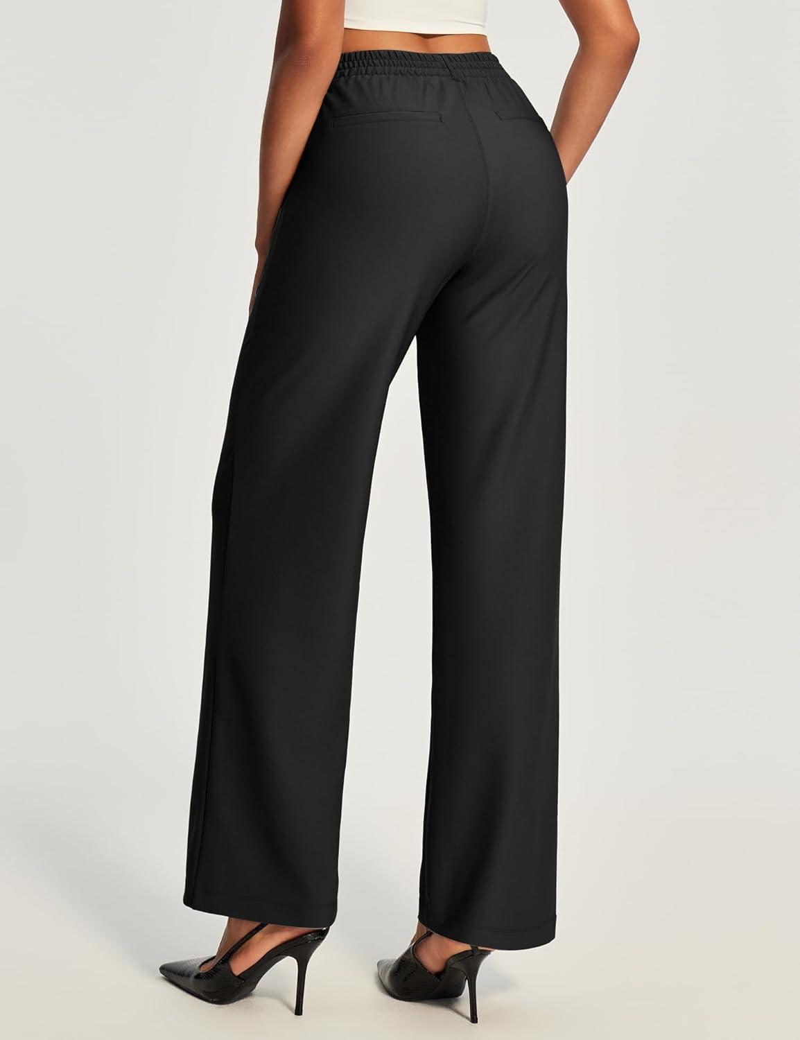 Ewedoos Women Wide Leg Stretchy Dress Pants High Waisted Work Pants Pull on Business Casual Outfits Slacks Office Trousers(Black-petite)