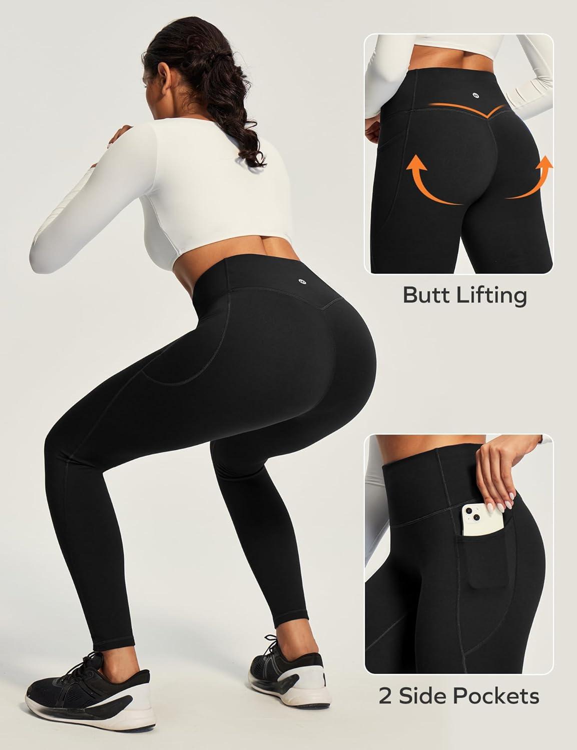 Ewedoos Fleece Lined Leggings Women Tummy Control with Pockets No Front Seam Warm Thermal Leggings Winter Running Yoga Pants(Black)