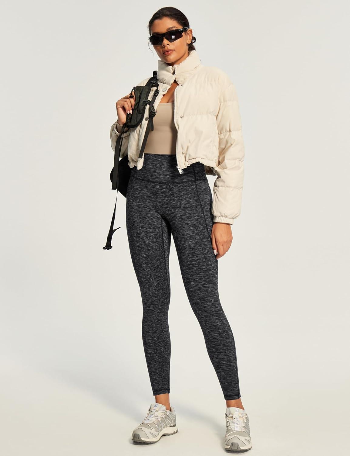Ewedoos Fleece Lined Leggings Women Tummy Control with Pockets No Front Seam Warm Thermal Leggings Winter Running Yoga Pants(Charcoal)