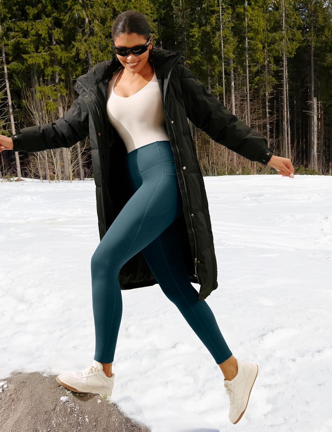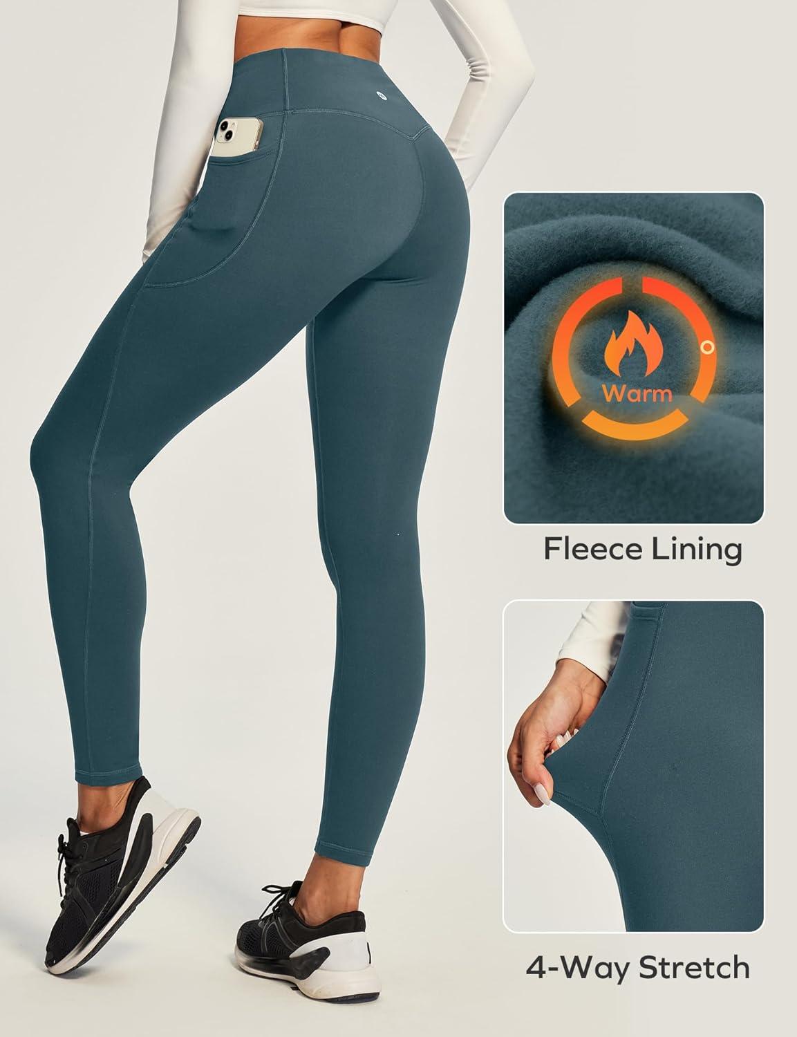 Ewedoos Fleece Lined Leggings Women Tummy Control with Pockets No Front Seam Warm Thermal Leggings Winter Running Yoga Pants(Drak Green)