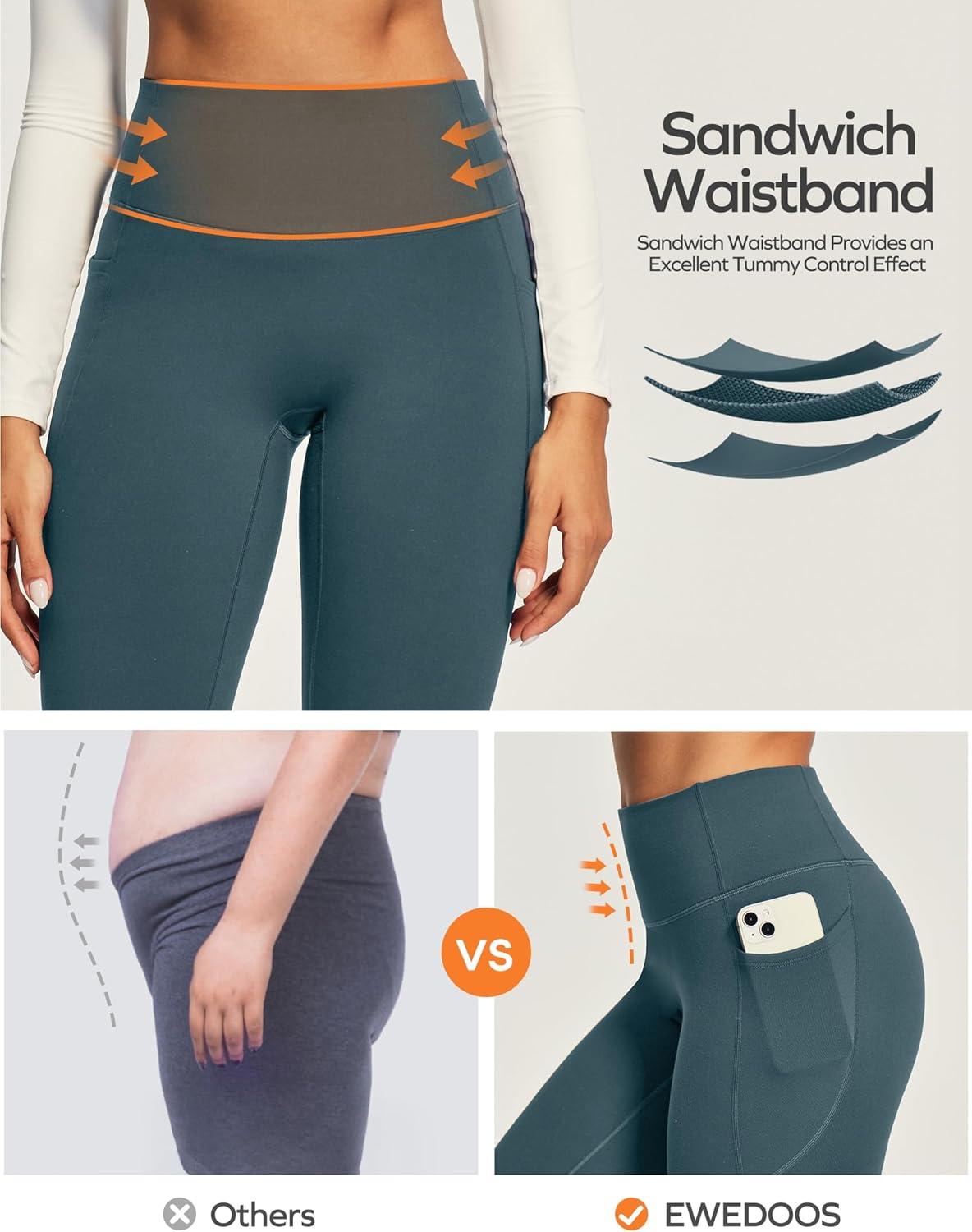 Ewedoos Compression Leggings with Pockets for Women Tummy Control Leggings No Front Seam Workout High Waisted Yoga Pants Gym(Black)
