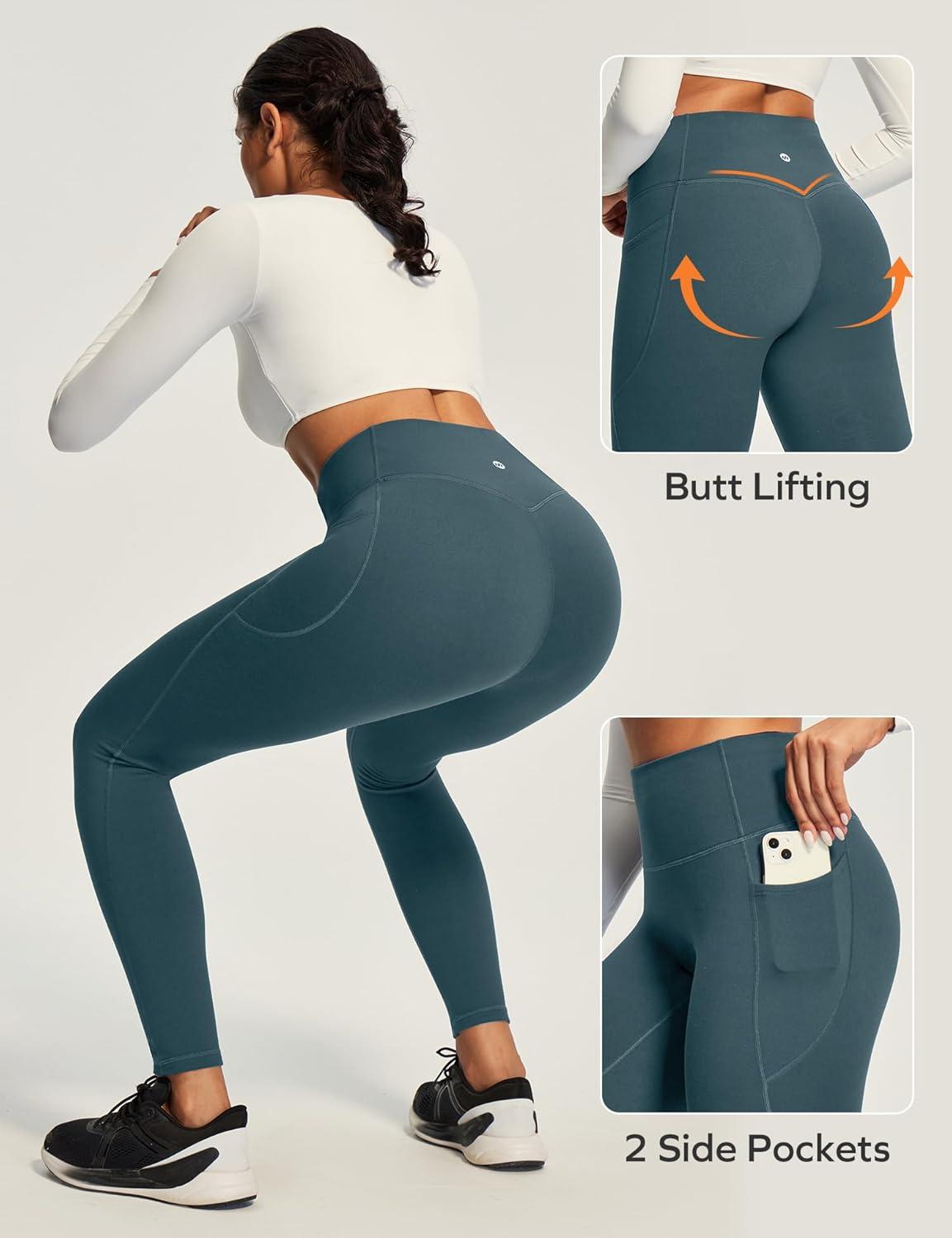 Ewedoos Compression Leggings with Pockets for Women Tummy Control Leggings No Front Seam Workout High Waisted Yoga Pants Gym(Green)