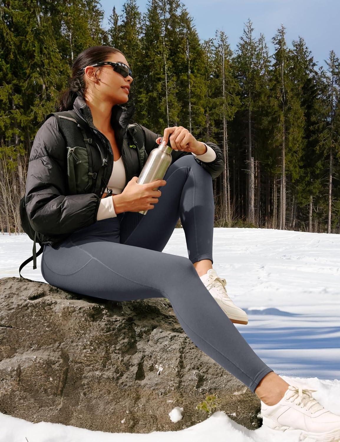 Ewedoos Fleece Lined Leggings Women Tummy Control with Pockets No Front Seam Warm Thermal Leggings Winter Running Yoga Pants(Grey)