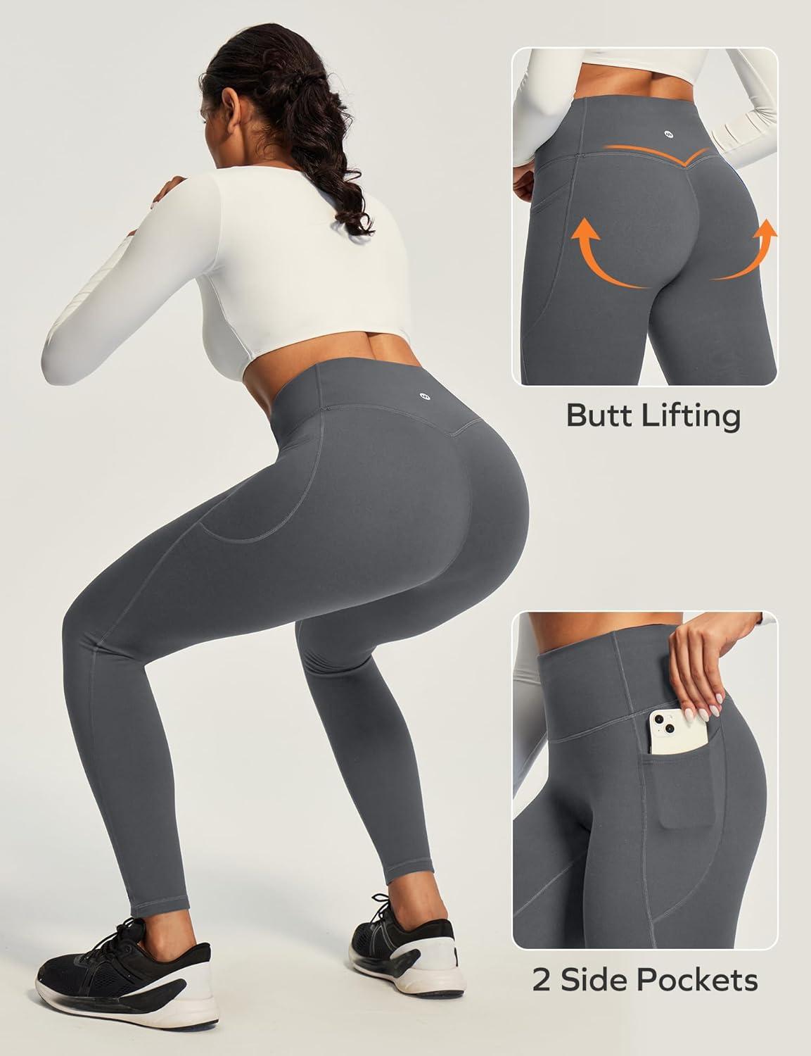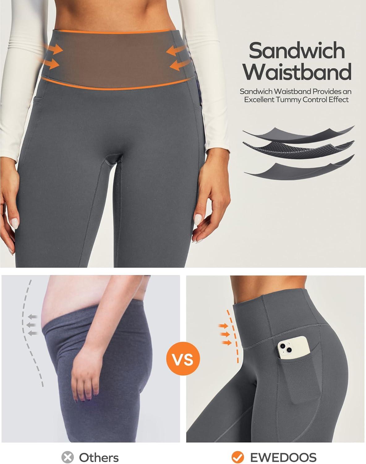 Ewedoos Compression Leggings with Pockets for Women Tummy Control Leggings No Front Seam Workout High Waisted Yoga Pants Gym(Gray)