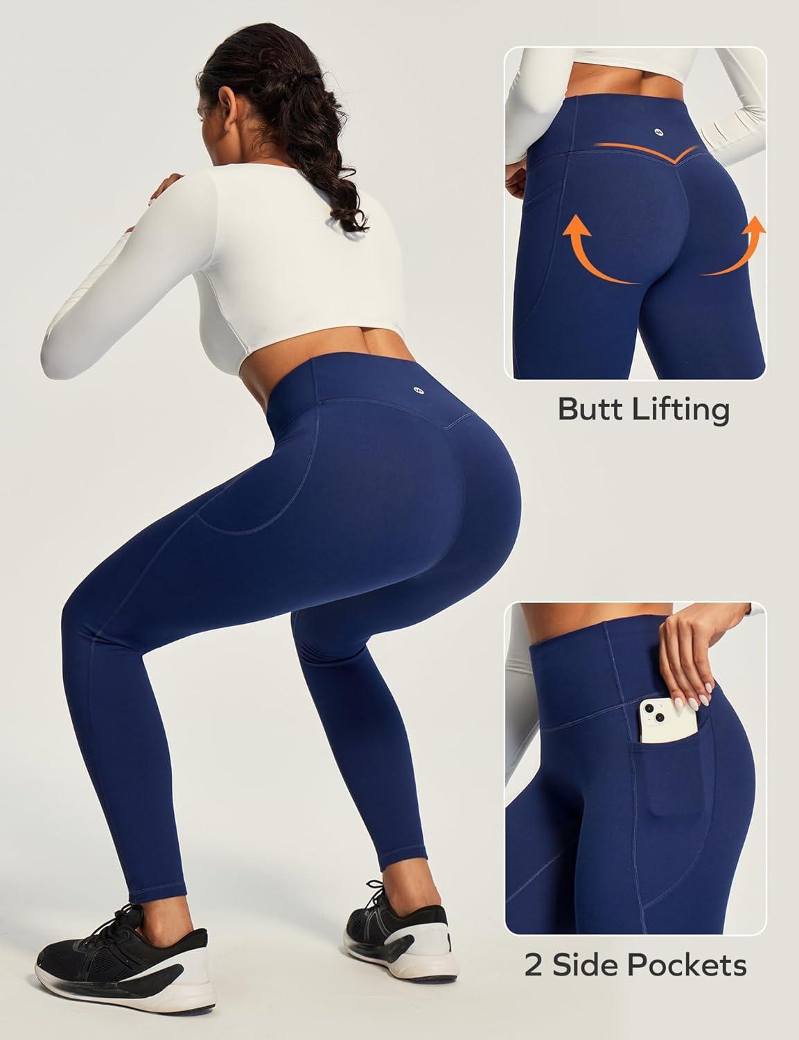 Ewedoos Compression Leggings with Pockets for Women Tummy Control Leggings No Front Seam Workout High Waisted Yoga Pants Gym(Blue)