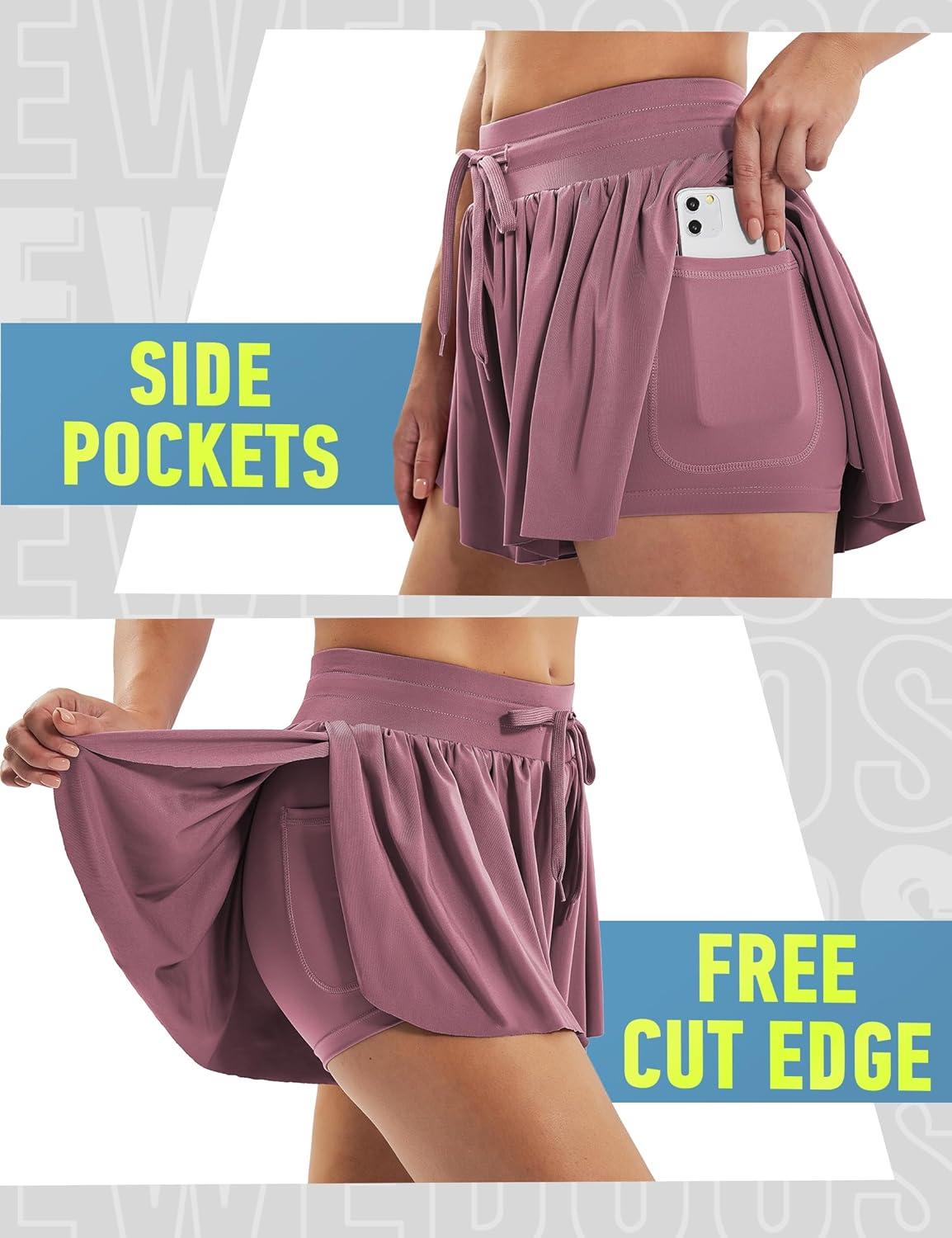 Ewedoos Butterfly Shorts Women Flowy Shorts for Women 2 in 1 High Waisted Running Workout Athletic Tennis Shorts Skort(Mauve)