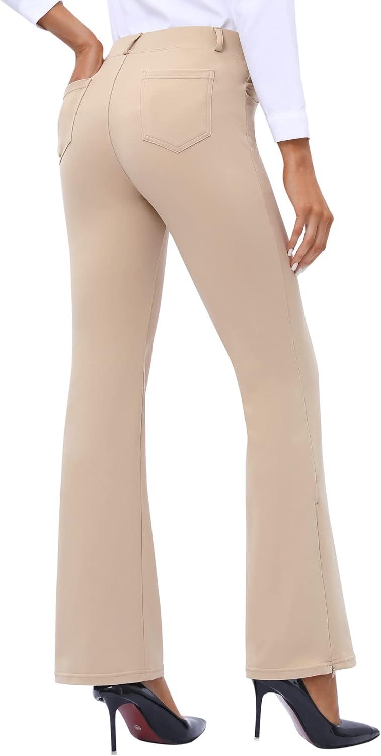 Ewedoos Dress Pants Women Stretchy Work Pants for Women with Pockets Dress Pants Tummy Control Office Casual 31″/ 29″(Khaki22)