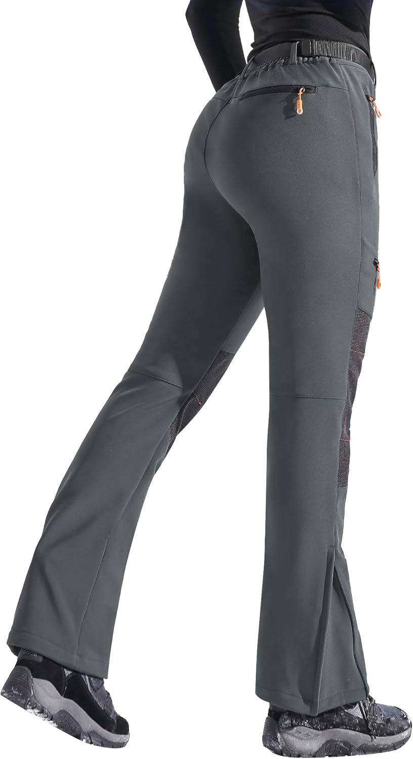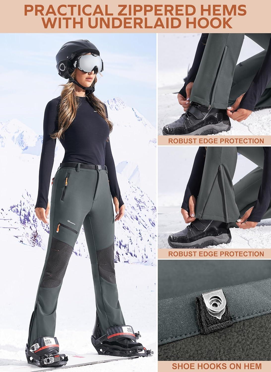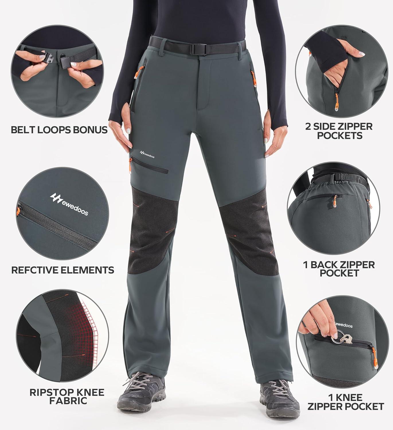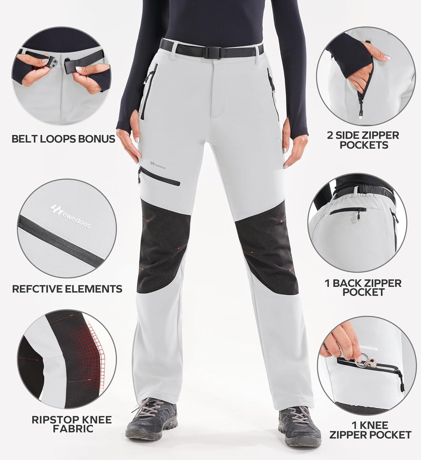 Ewedoos Snow Pants Womens Ski Pants Waterproof Insulate Softshell Fleece Lined Winter Hiking Snowboard Zipper Bottom Leg(Grey)