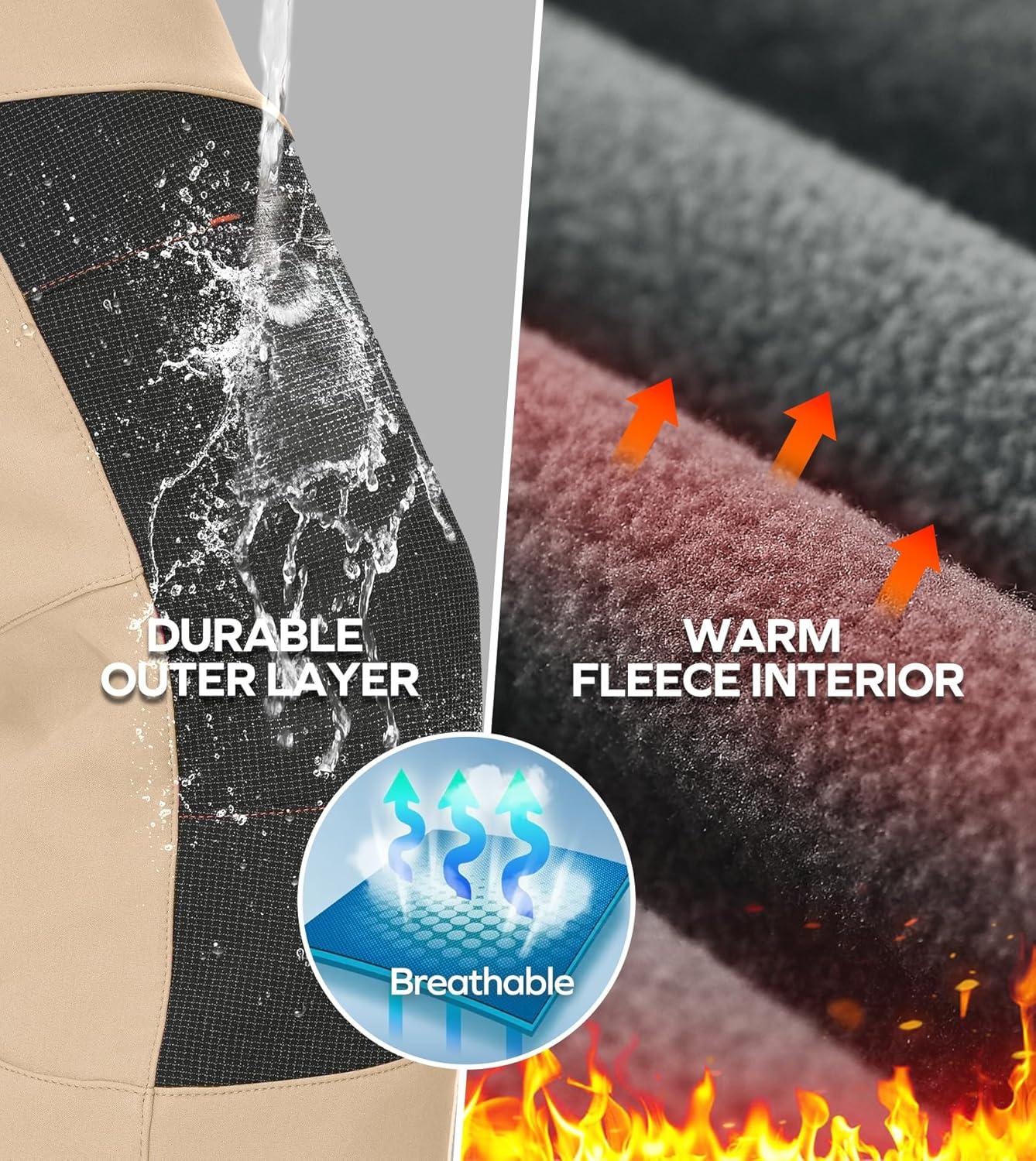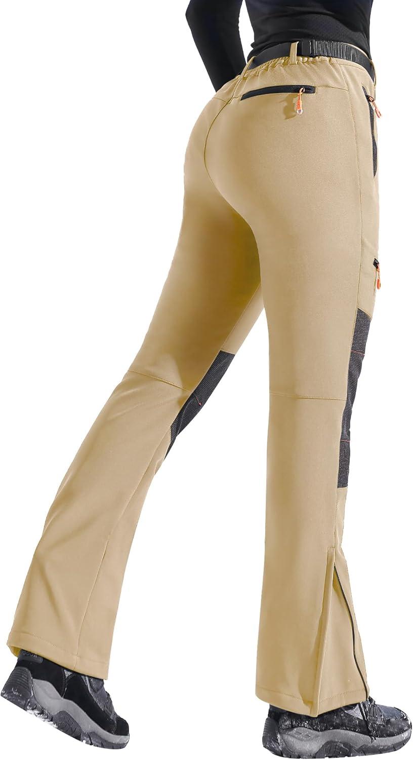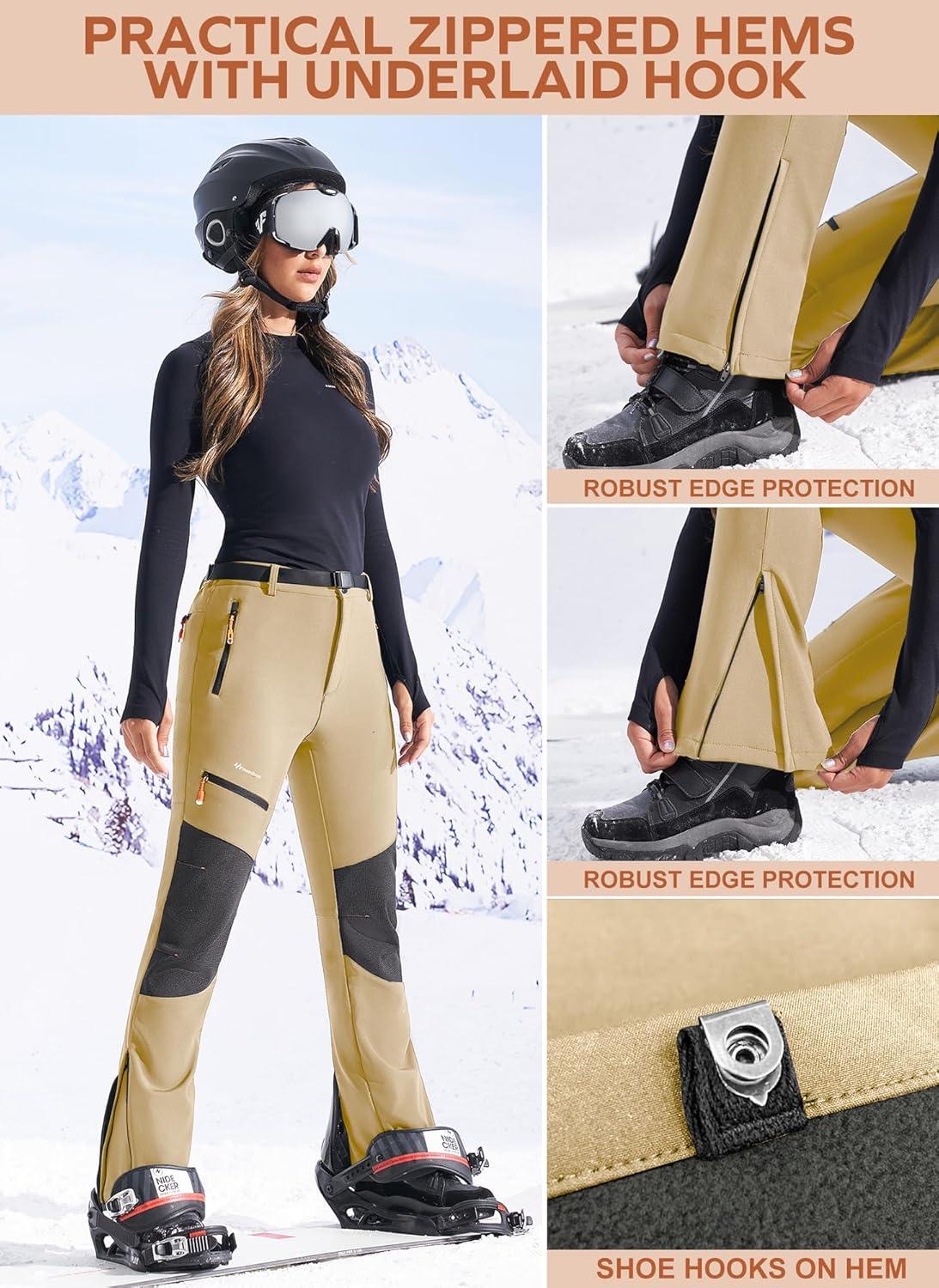 Ewedoos Snow Pants Womens Ski Pants Waterproof Insulate Softshell Fleece Lined Winter Hiking Snowboard Zipper Bottom Leg(Khaki)