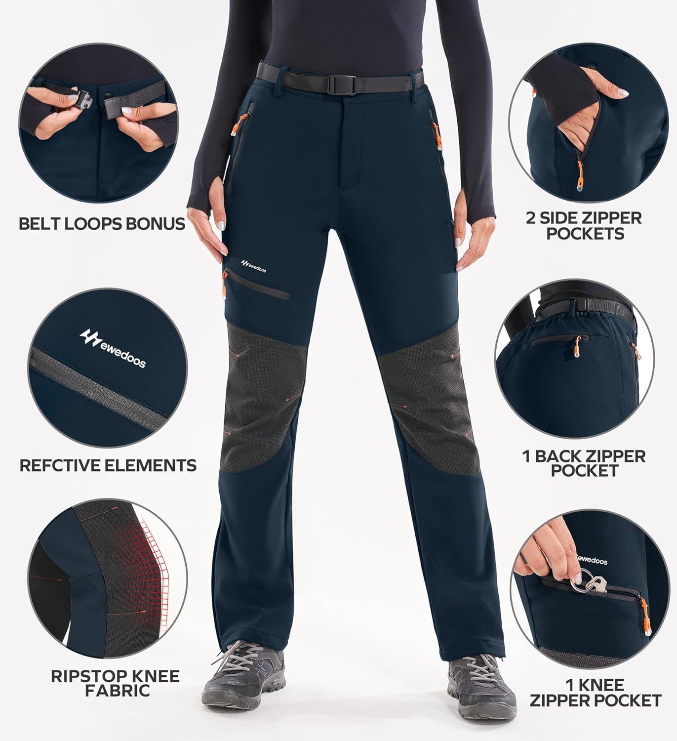 Ewedoos Snow Pants Womens Ski Pants Waterproof Insulate Softshell Fleece Lined Winter Hiking Snowboard Zipper Bottom Leg(Navy)