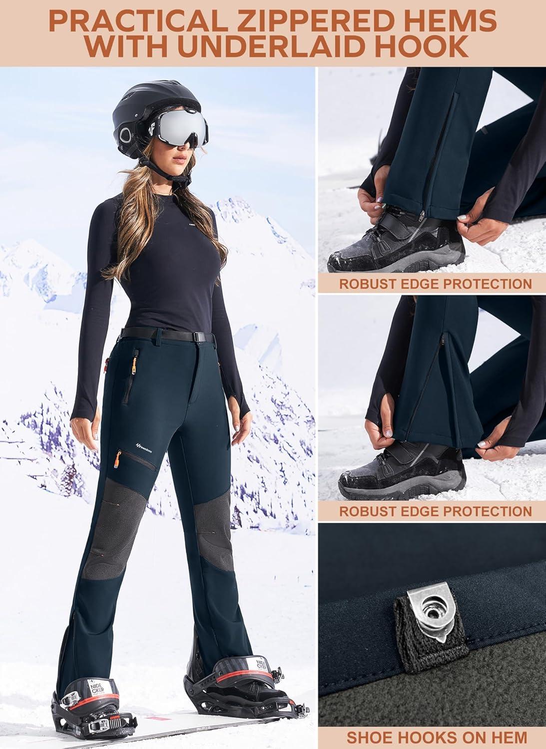 Ewedoos Snow Pants Womens Ski Pants Waterproof Insulate Softshell Fleece Lined Winter Hiking Snowboard Zipper Bottom Leg(Black)