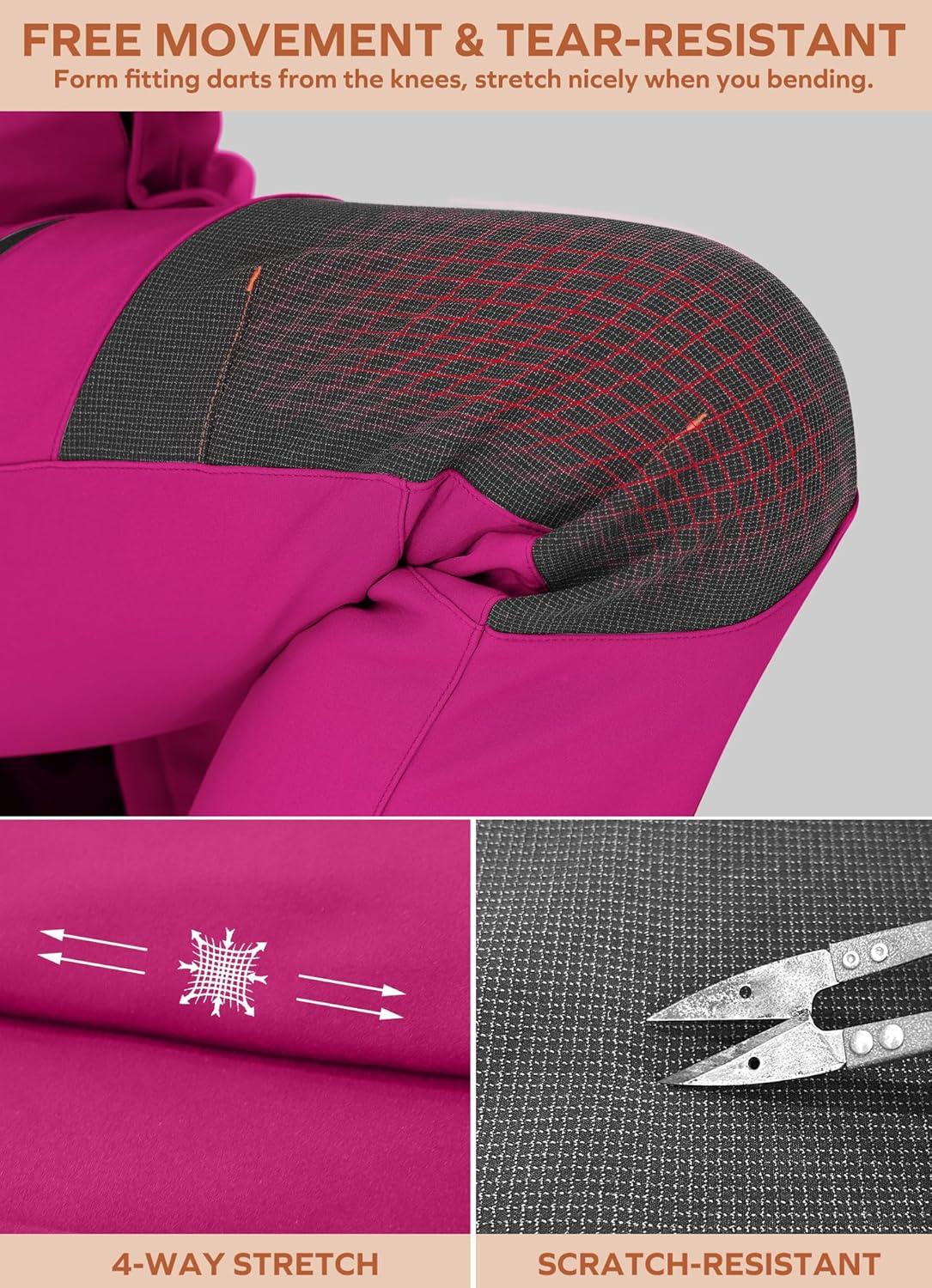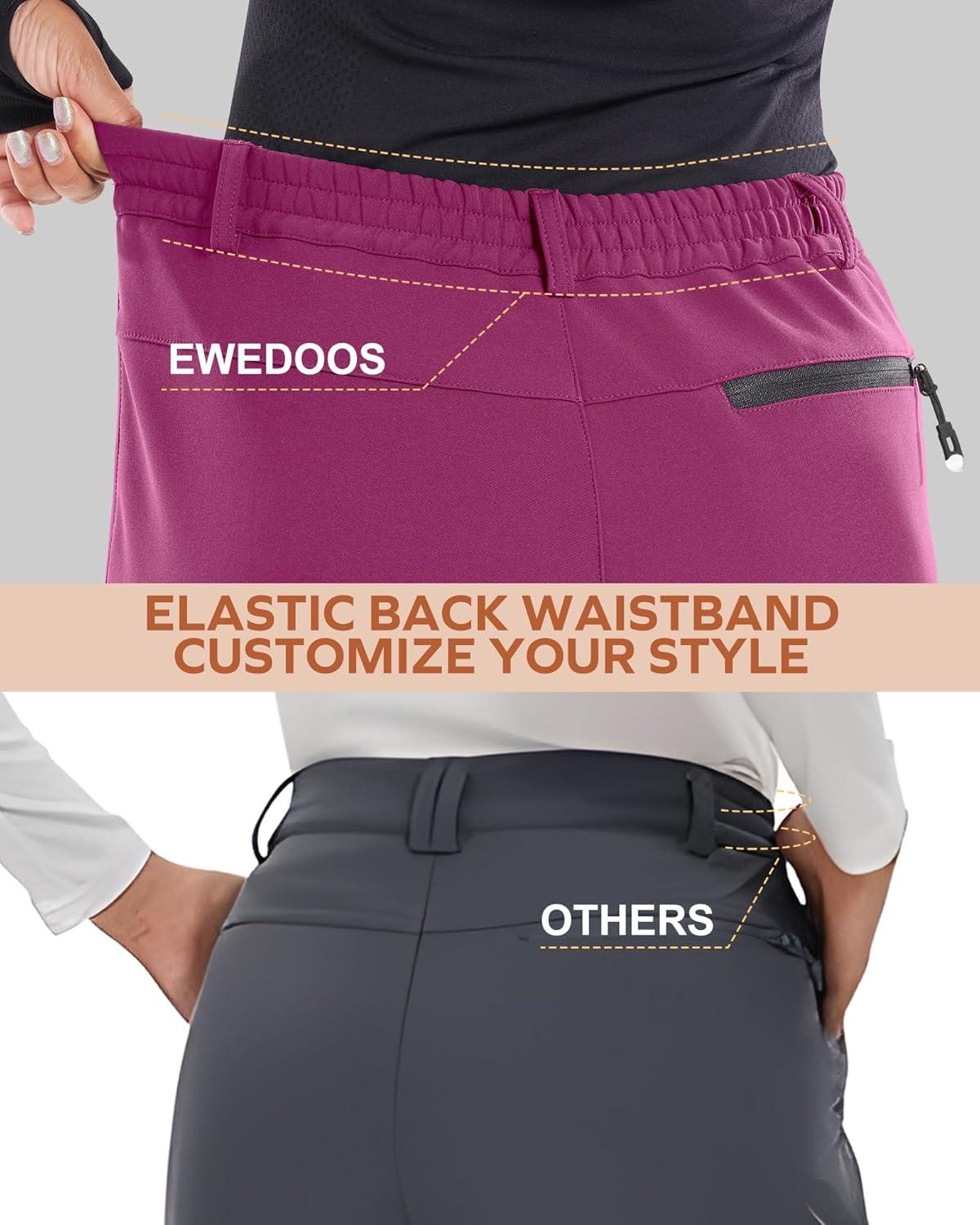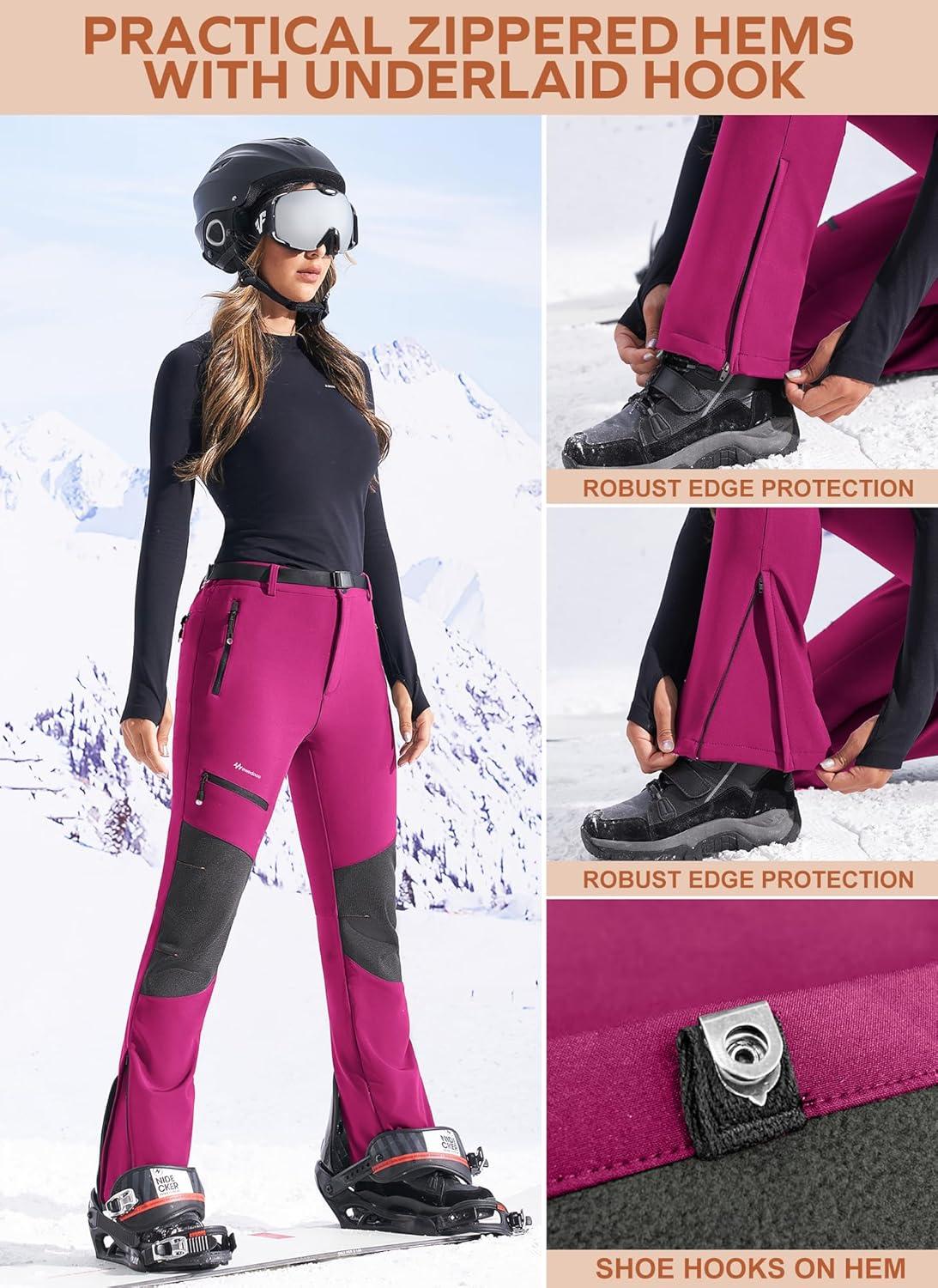 Ewedoos Snow Pants Womens Ski Pants Waterproof Insulate Softshell Fleece Lined Winter Hiking Snowboard Zipper Bottom Leg(Rose)