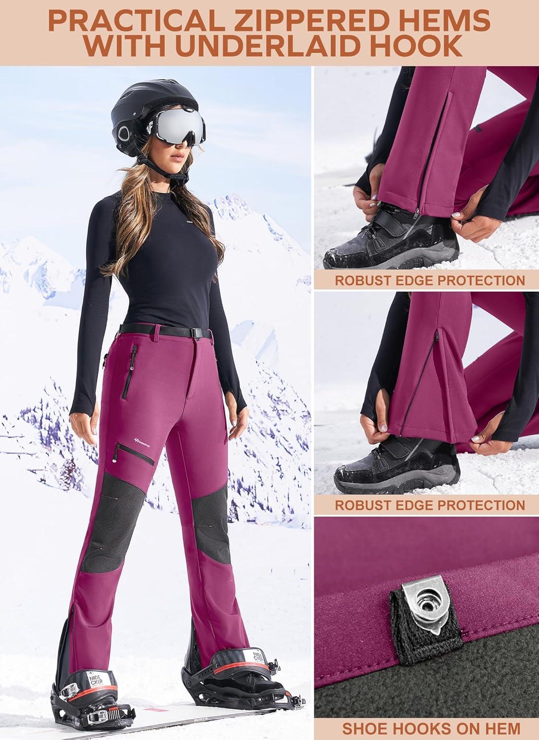 Ewedoos Snow Pants Womens Ski Pants Waterproof Insulate Softshell Fleece Lined Winter Hiking Snowboard Zipper Bottom Leg(Purple)