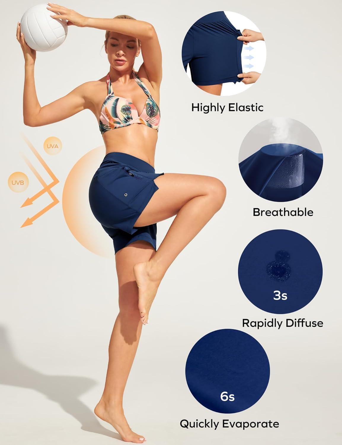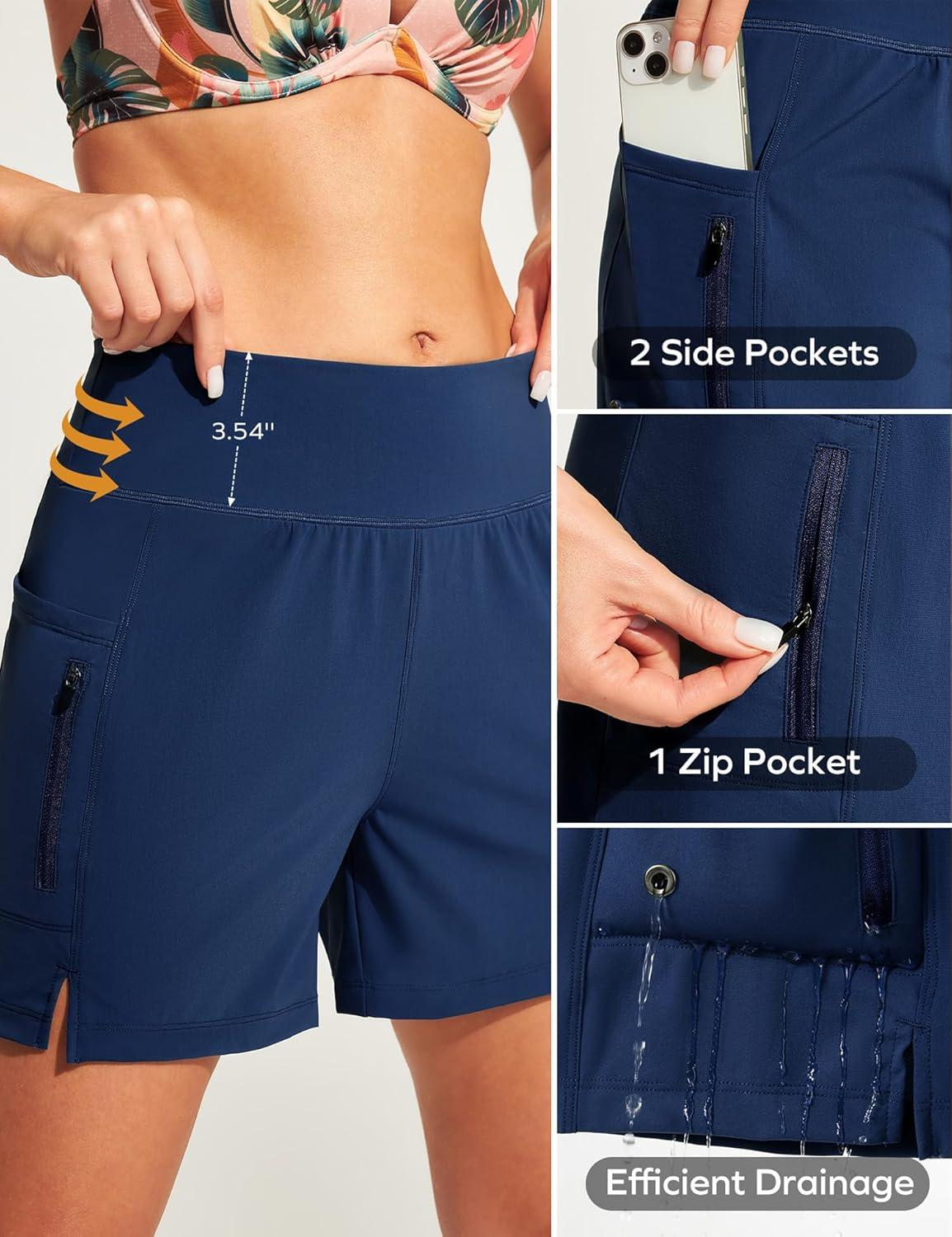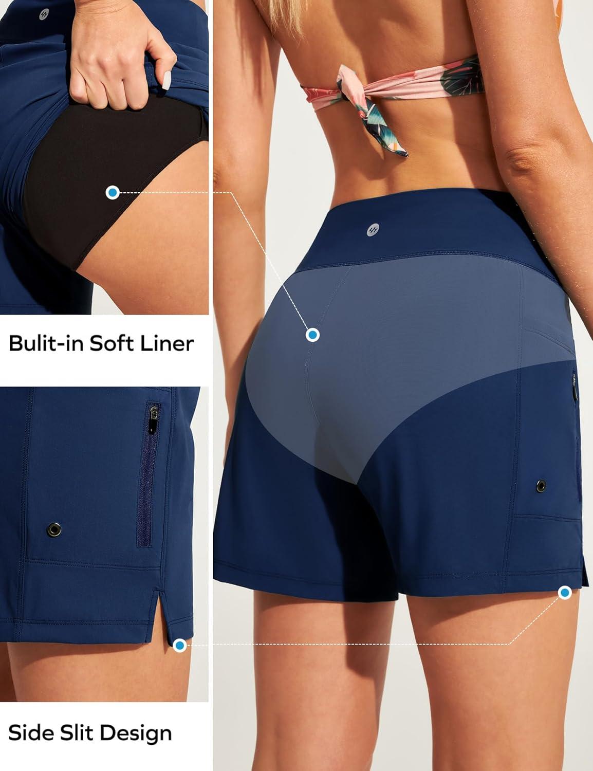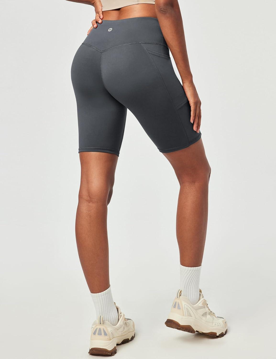 Ewedoos Biker Shorts Women Tummy Control with 4 Pockets No Front Seam Hiking Workout Spandex Shorts High Waisted UPF50+(Grey)