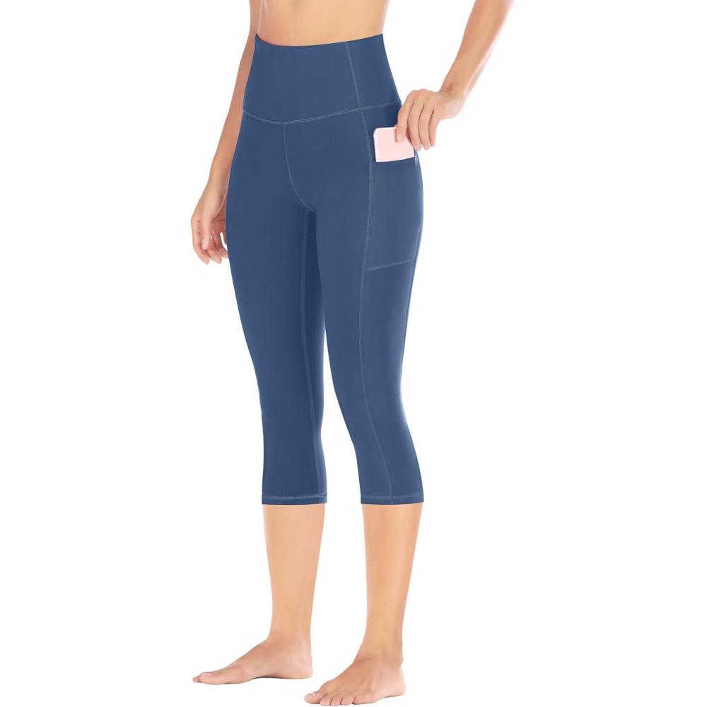 Ewedoos Capri Leggings for Women High Waisted Yoga Pants for Women with Pockets Tummy Control Workout Leggings Yoga Capris(Indigo Capris)