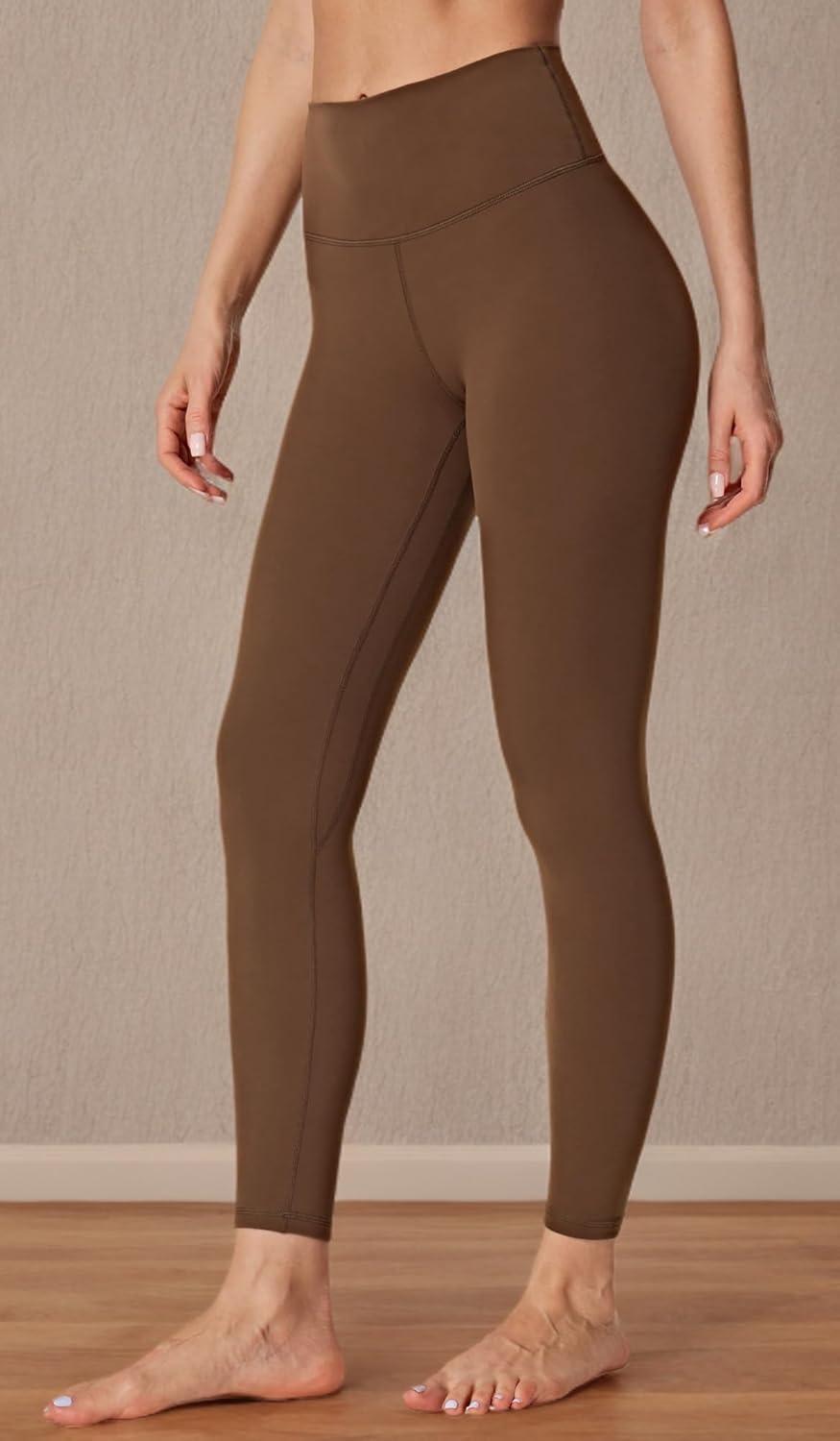 Ewedoos Compression Leggings for Women Tummy Control Workout Leggings Buttery Soft Leggings High Waisted Yoga Pants(Brown)
