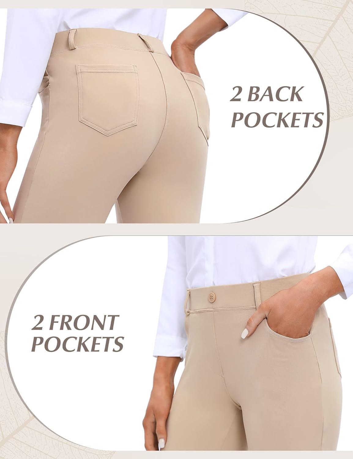 Ewedoos Dress Pants Women Stretchy Work Pants for Women with Pockets Dress Pants Tummy Control Office Casual 31″/ 29″(Khaki22)