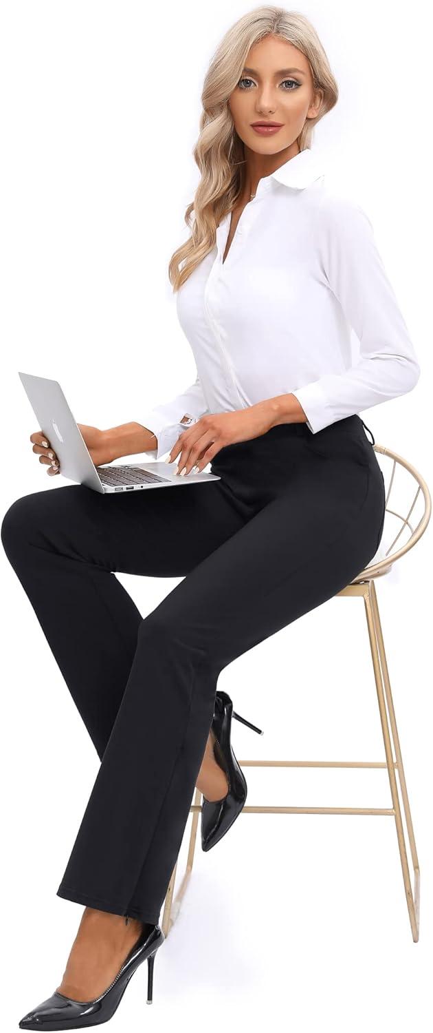 Ewedoos Dress Pants Women Stretchy Work Pants for Women with Pockets Dress Pants Tummy Control Office Casual 31″/ 29″(New Black)